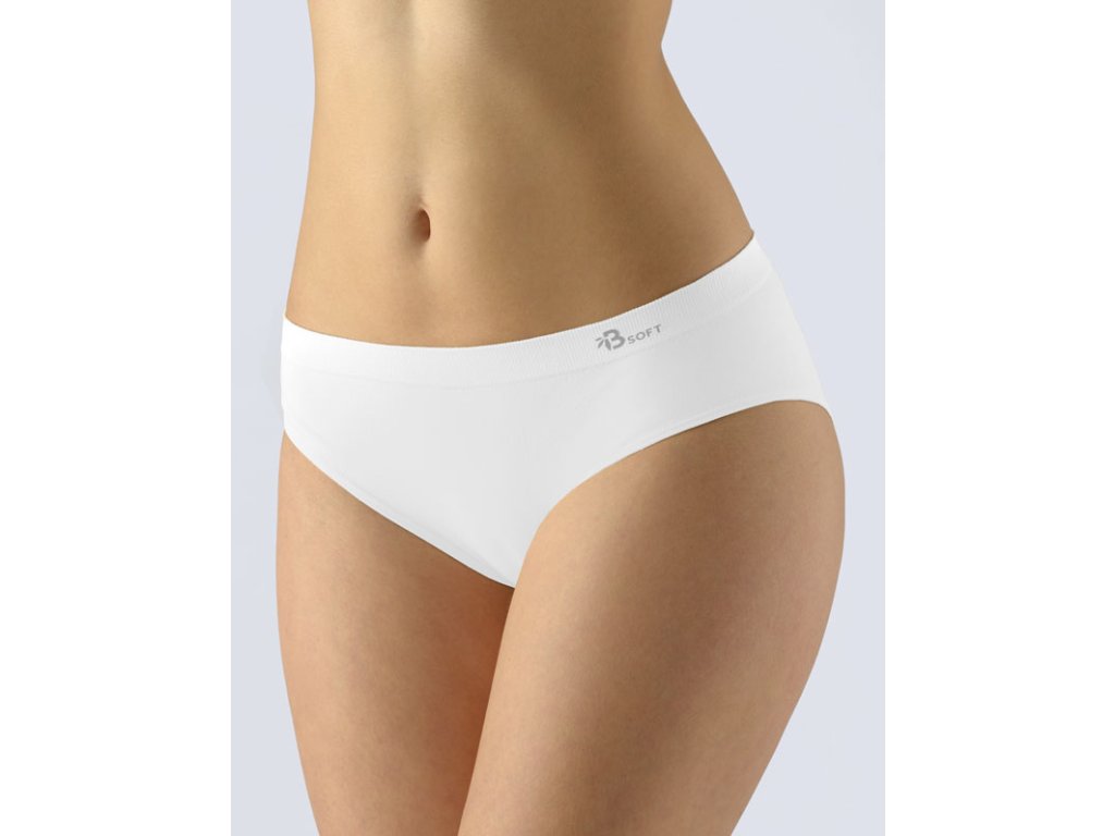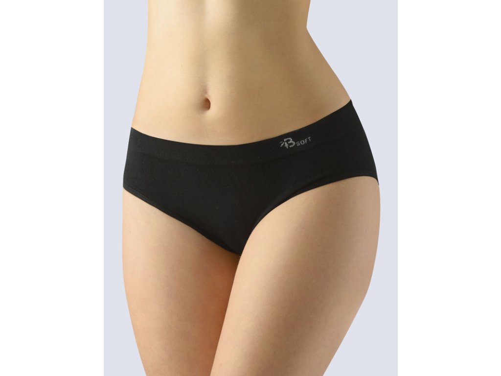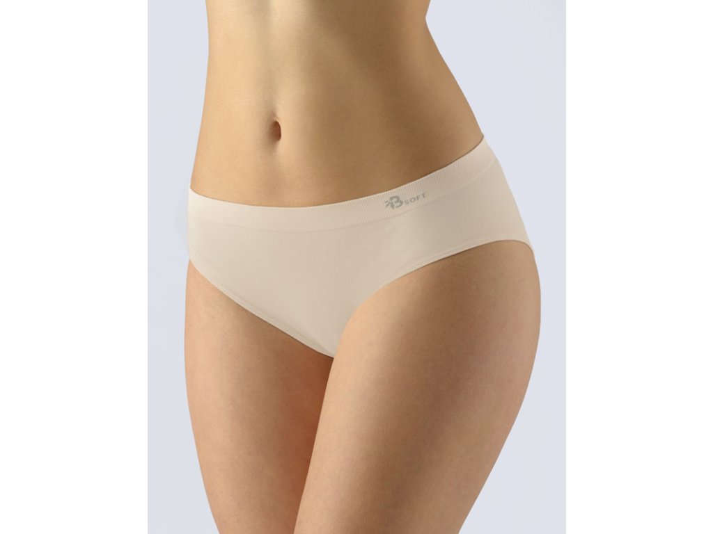 Kalhotky klasického střihu se širším bokem, dámské bezešvé prádlo. Pasový kraj je zesílený a zapravený bezešvým způsobem. V nohavičkách je zašitá úzká pruženka. Kalhotky jsou jednobarevné. V záložce je vypletené logo v šedé barvě.