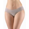Bokové kalhotky francouzského střihu se širokým bokem, dámské bezešvé prádlo. Pasový kraj je zesílený a zapravený bezešvým způsobem. Nohavičky jsou začištěné podehnutím. Kalhotky jsou jednobarevné. V záložce je vypletené logo.