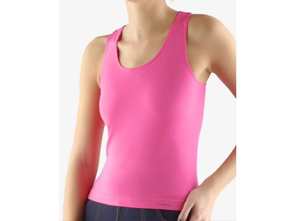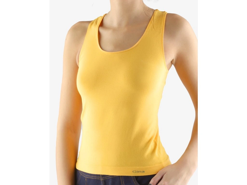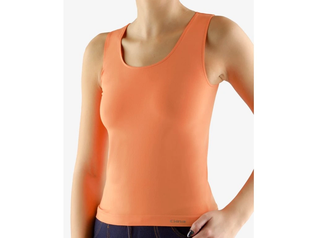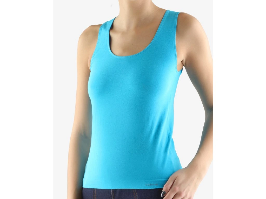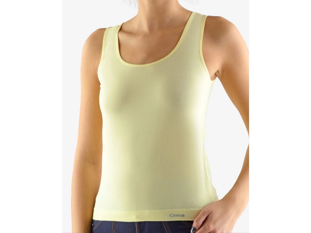Tílko se širšími ramínky, dámské bezešvé prádlo. Dolní kraj je zapravený bezešvým způsobem. V průramcích a průkrčníku je zašitá úzká pruženka. Tílko je jednobarevné. V záložce je vypletené logo v šedé barvě. Materiál je vyroben z bavlny, která je doplněna elastanem. Úplet je vhodný pro všechny, kteří hledají přírodní materiály. Elastan přidává materiálu pružnost a zlepšuje jeho tvarovou stálost. Prádlo z tohoto materiálu je vhodné pro každodenní nošení. Kolekce bezešvého prádla s MicroBavlnou je univerzální a ideální pro uživatele, kteří vyhledávají přírodní materiály.