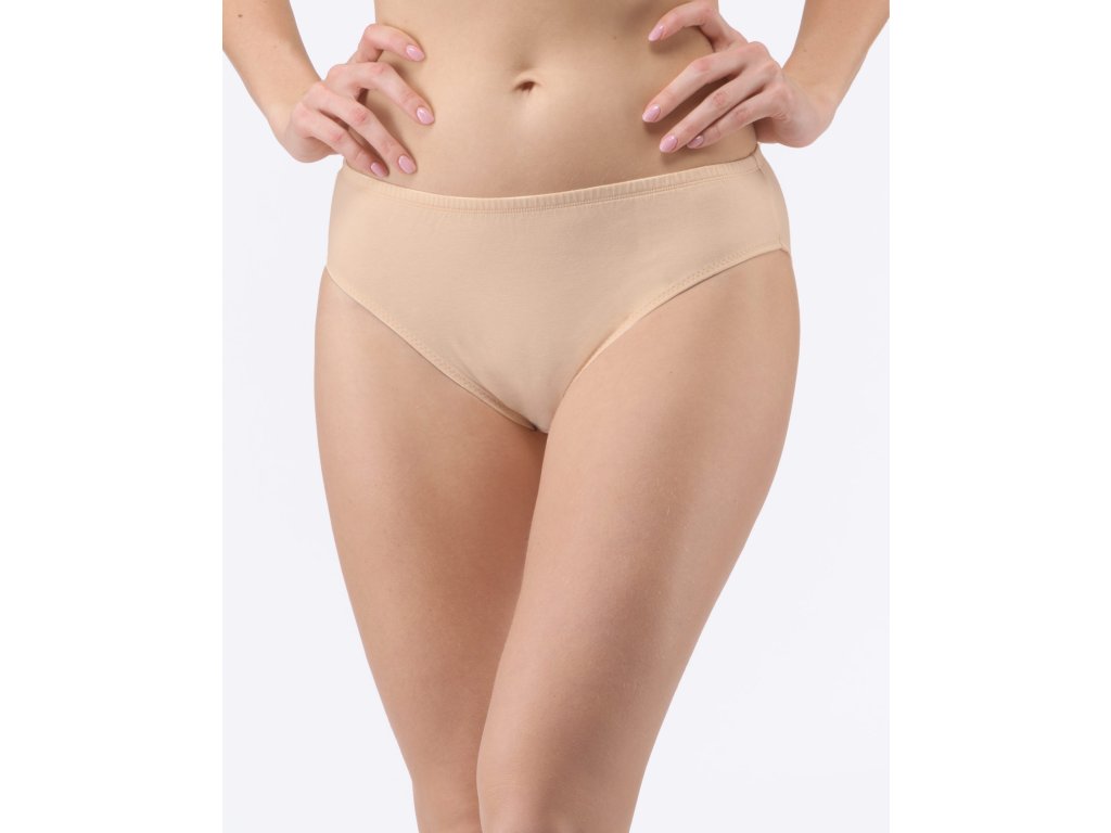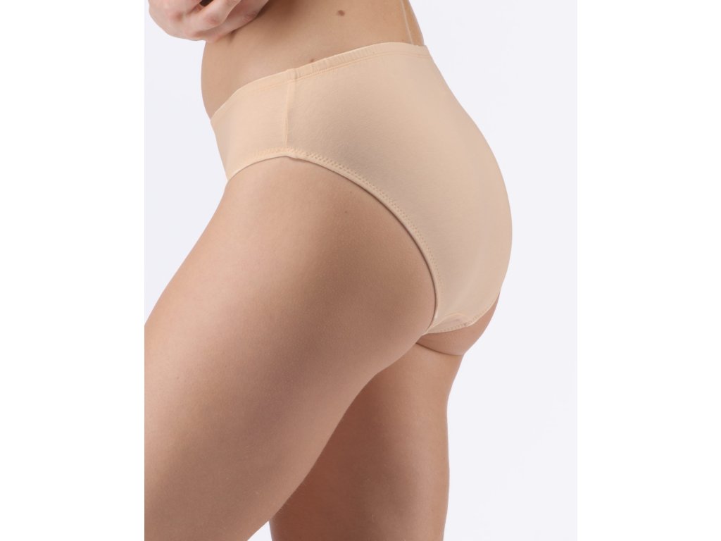 Kalhotky klasického střihu, dámské šité prádlo. V pasovém kraji je zašitá úzká pruženka. V nohavičkách je zašitá úzká pruženka. Kalhotky jsou jednobarevné. Materiál je vyroben z bavlny, která je doplněna elastanem. Úplet je vhodný pro všechny, kteří hledají přírodní materiály. Elastan přidává materiálu pružnost a zlepšuje jeho tvarovou stálost. Prádlo z tohoto materiálu je vhodné pro každodenní nošení.