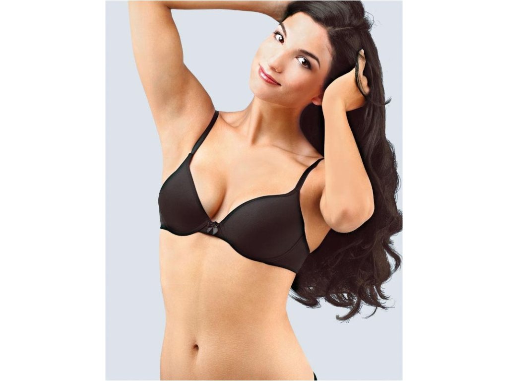Podprsenka s kosticemi a lisovanými košíčky, dámské šité prádlo. Podprsenka je jednobarevná. Zapínání je třířadé na 2 háčky.