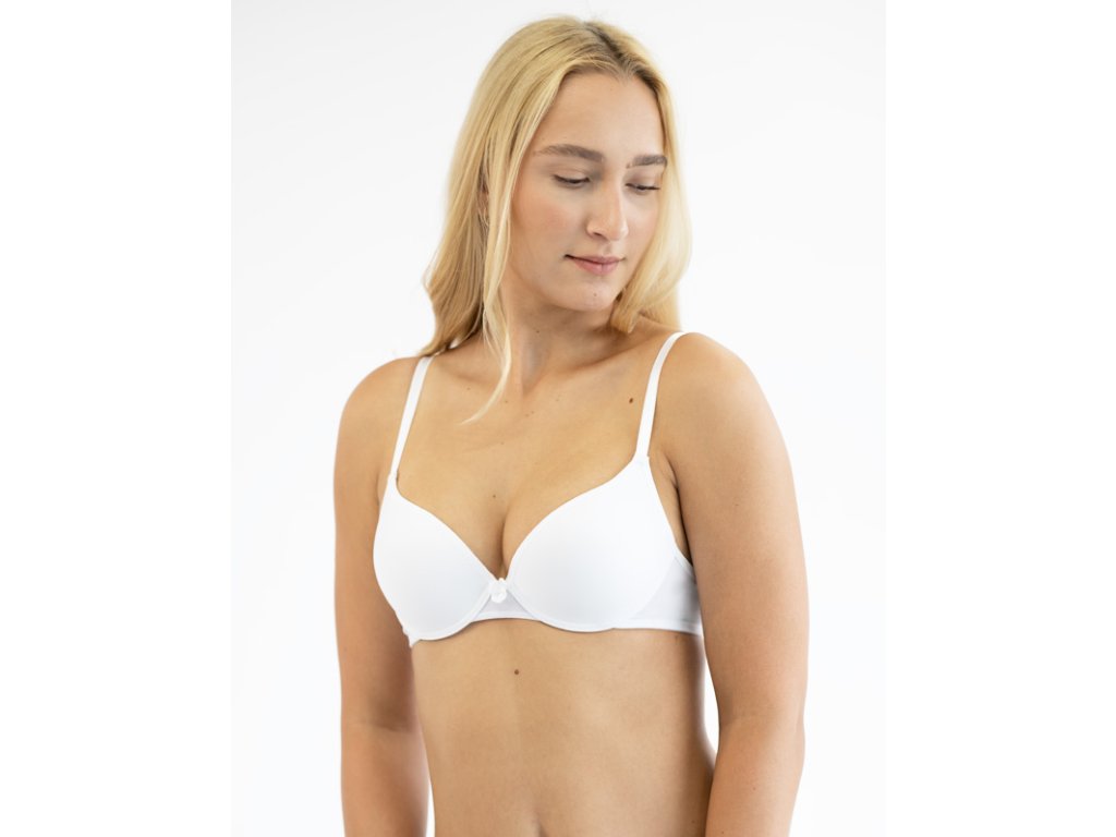 Podprsenka s kosticemi a lisovanými košíčky, dámské šité prádlo. Košíčky jsou potažené krajkou. Zadní díl je hladký. Ramínka jsou nastavitelná. Podprsenka je jednobarevná. Zapínání je třířadé na 2 háčky.