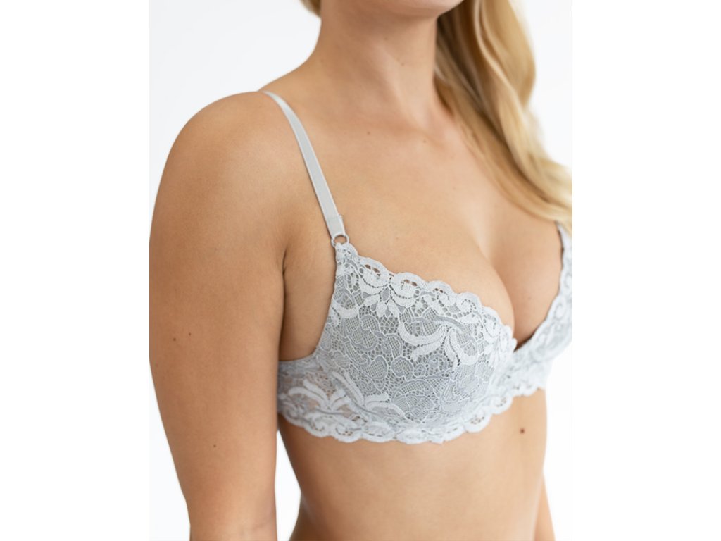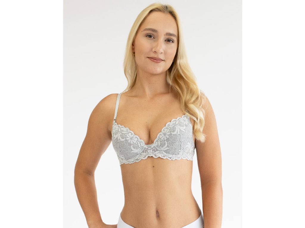 Podprsenka s kosticemi a lisovanými košíčky, dámské šité prádlo. Košíčky i zadní díl jsou krajkové. Ramínka jsou nastavitelná. Podprsenka je jednobarevná. Zapínání je třířadé na 2 háčky.