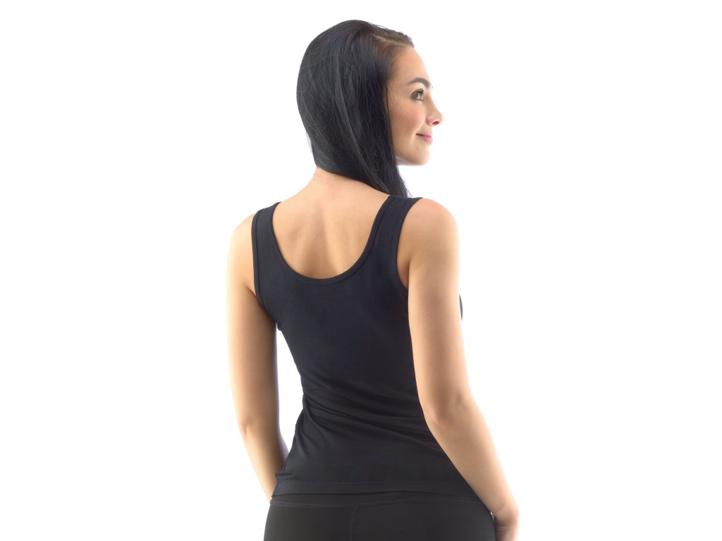 Tílko se širšími ramínky, dámské šité prádlo. Průramky a průkrčník jsou začištěny lemovacími proužky. Tílko je jednobarevné. Materiál je vyroben z bambusového vlákna, které je doplněno elastanem. Úplet je velmi jemný a příjemný na nošení. Do každodenního prádla přináší luxusní hedvábný vzhled. Luxusní kolekce bezešvého prádla ECO Bamboo má nejvyšší podíl bambusového vlákna. V této kolekci jsme se zaměřili na ekologické zpracování jak samotného vlákna, tak postupů při barvení a konečné úpravě textilie.
