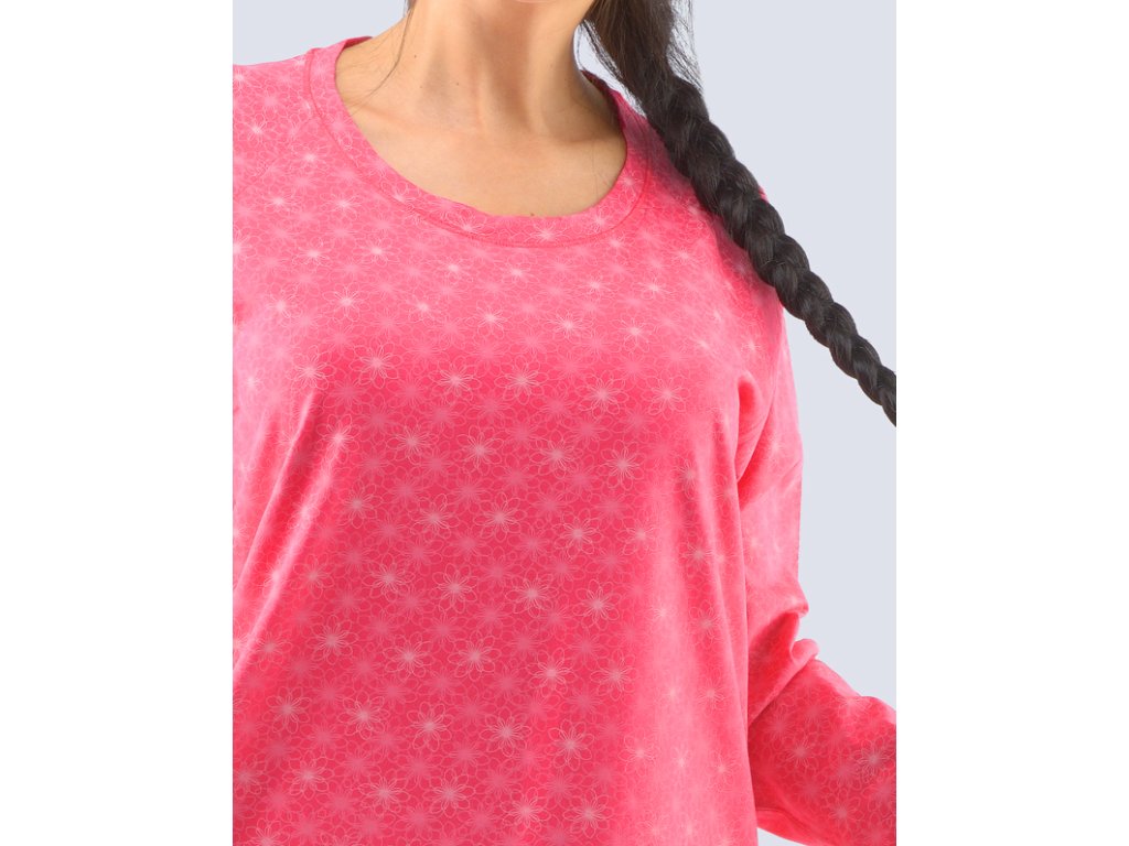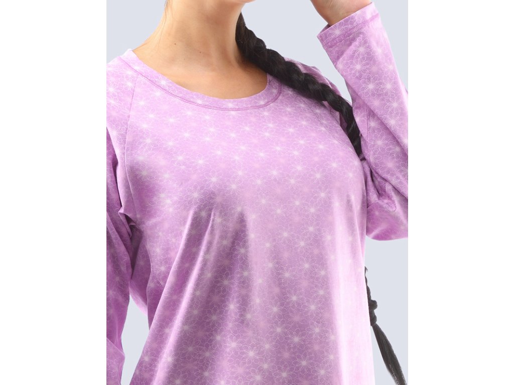 Noční košilka s dlouhým rukávem, dámské šité prádlo. Košilka je potištěná.