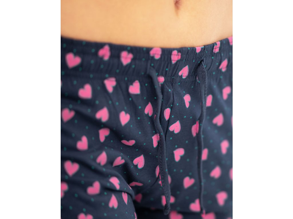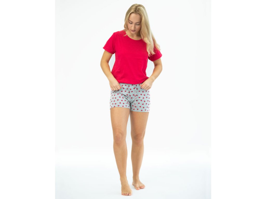 Základem kvalitního spánku je vaše pohodlí, ke kterému vám pomůže i pohodlné noční prádlo. Naše dámské pyžamo s krátkým rukávem a krátkými kalhotami s potiskem potěší každou milovnici pohodlí. Pyžamo je v moderním střihu a celé ze 100% bavlny. Díky tomu se v něm bude spát doslova jako v bavlnce. Neztratí se vám ani jako domácí oblečení, jelikož je vhodné pro každodenní nošení.