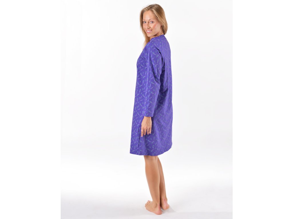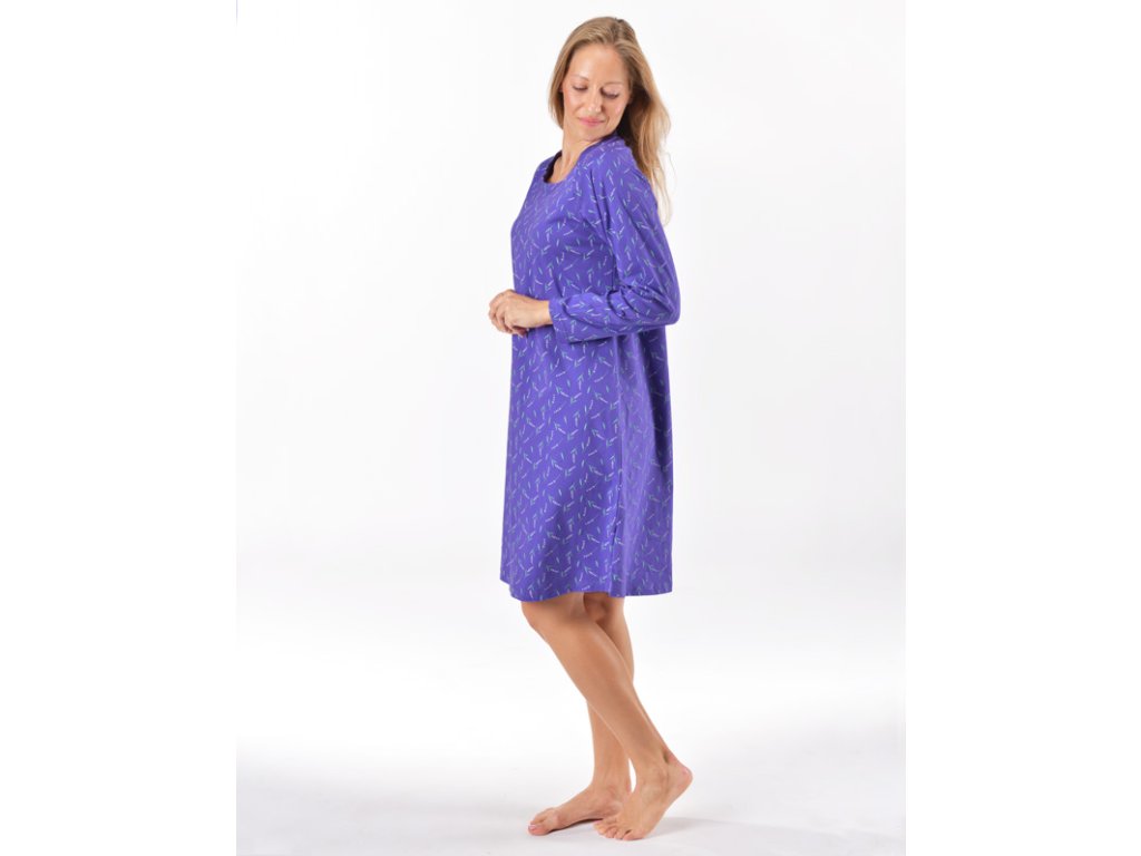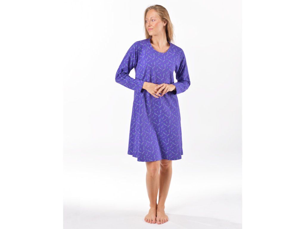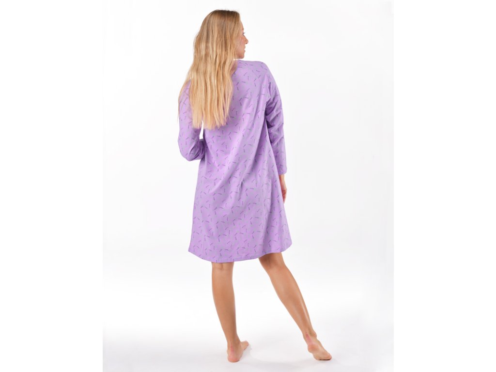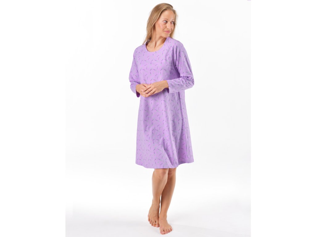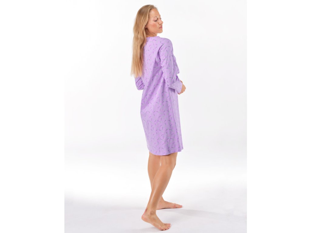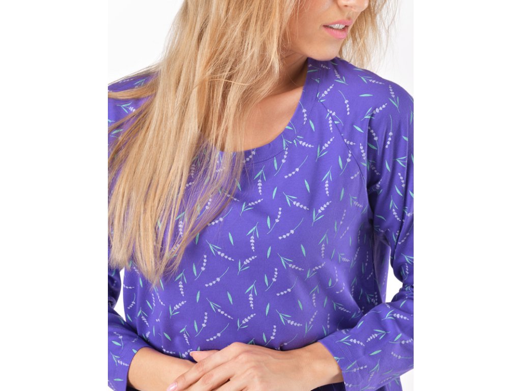 Základem kvalitního spánku je vaše pohodlí, ke kterému vám pomůže i pohodlné noční prádlo. Noční košilka má potisk s motivem levandule, délku po kolena, dlouhý rukáv a kulatý výstřih. Každou milovnici přírodních materiálů potěší materiál ze 100% bavlny, který vám zajistí pohodlí po celou noc.
