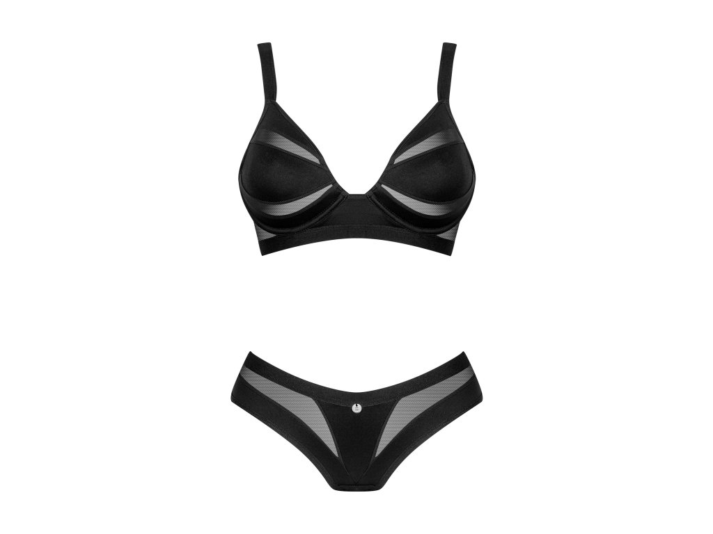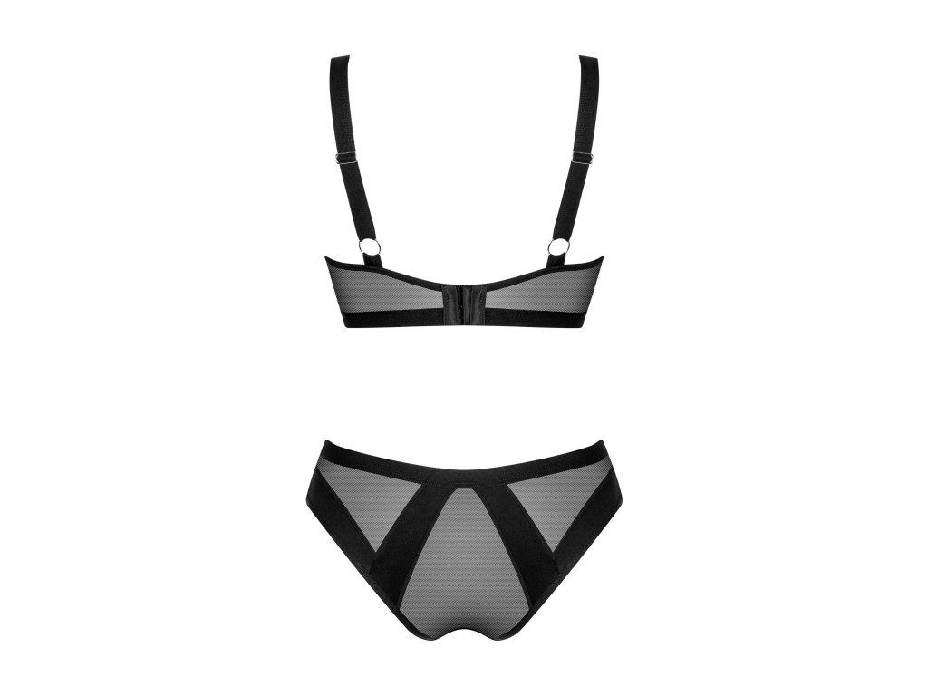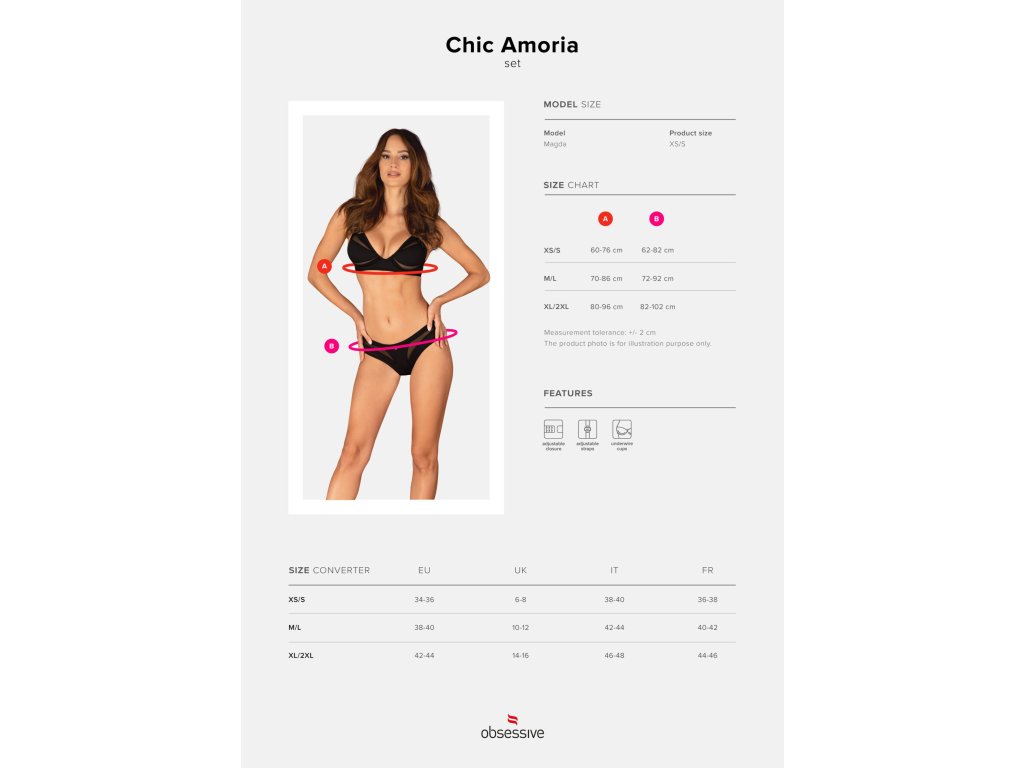 Elegantní dvoudílná souprava Amoria ● sexy spodní prádlo ● nastavitelná ramínka a vícestupňové zapínání ● kostice pro zvýraznění poprsí ● ozdobný stříbrný přívěsek ● výrazná kombinace elastických látek ● souprava se skládá z podprsenky a kalhotek ● baleno v krabičce