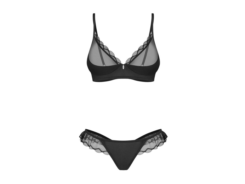 Dvoudílná sada Stelisadvoudílná souprava Stelisa ● podprsenka a tanga v černé barvě ● průhledná podprsenka s měkkými košíčky a jemně zvlněnou látkou ● vyztužené košíčky s částečným polstrováním ● trojúhelníkový výstřih ● nastavitelná ramínka ● zapínání na ramínka ● tanga zdobená jemným tylovým lemem ● volánkový lem ● kombinace průhledné síťoviny a hladké látky ● trojúhelníková podprsenka s nastavitelnými ramínky ● zapínání na háčky a očka ● šněrování podprsenky nastavitelná ramínka ● několikastupňové zapínání na háčky a očka ● tanga zdobená jemným tylovým lemem ● volánkový lem ● kombinace průhledné síťoviny a hladké tkaniny ● stříbrná visačka se znakem Obsessive ● dokonale zvýrazňuje ženské křivky