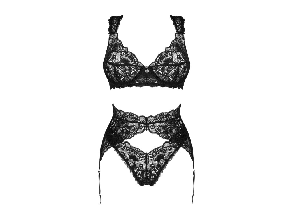Třídílná souprava Donna Dream ● skládá se z podprsenky, tang a podvazkového pásu ● nastavitelná ramínka a vícestupňové zapínání v podprsence - pro dokonalé přizpůsobení ● kostice - krásně zvýrazní poprsí ● stylový podvazkový pás - upoutá pozornost ● nastavitelný podvazkový pás se dvěma pásky - pro dokonalý vzhled ● souprava neobsahuje punčochy ● stříbrný podvazkový pás - upoutá pozornost ● jemný materiál - maximální pohodlí