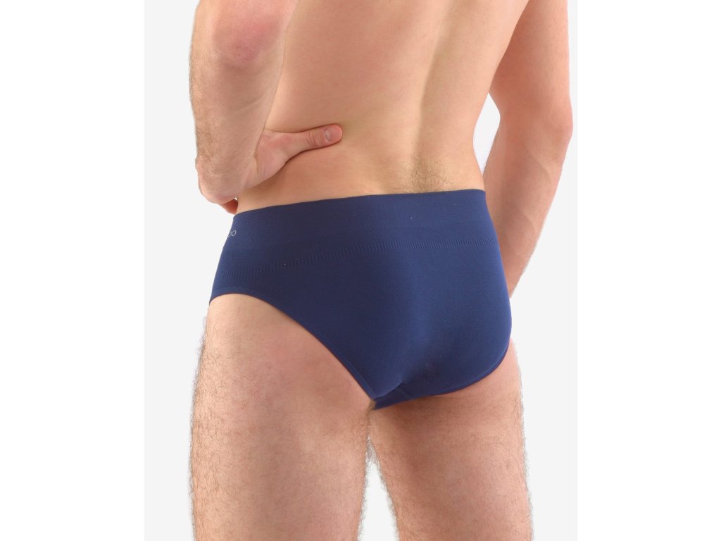 Slipy se širším bokem, pánské bezešvé prádlo. Pasový kraj je zesílený a zapravený bezešvým způsobem. V nohavičkách je zašitá úzká pruženka. Na předním díle jsou slipy tvarovány vypletenými zónami. Slipy jsou jednobarevné. V záložce je vypletené logo. Materiál je vyroben z bambusového vlákna, které je doplněno elastanem. Úplet je velmi jemný a příjemný na nošení. Do každodenního prádla přináší luxusní hedvábný vzhled. Luxusní kolekce bezešvého prádla ECO Bamboo má nejvyšší podíl bambusového vlákna. V této kolekci jsme se zaměřili na ekologické zpracování jak samotného vlákna, tak postupů při barvení a konečné úpravě textilie. Prádlo je baleno v ekologických sáčcích a doplněno krabičkou bez laminace.