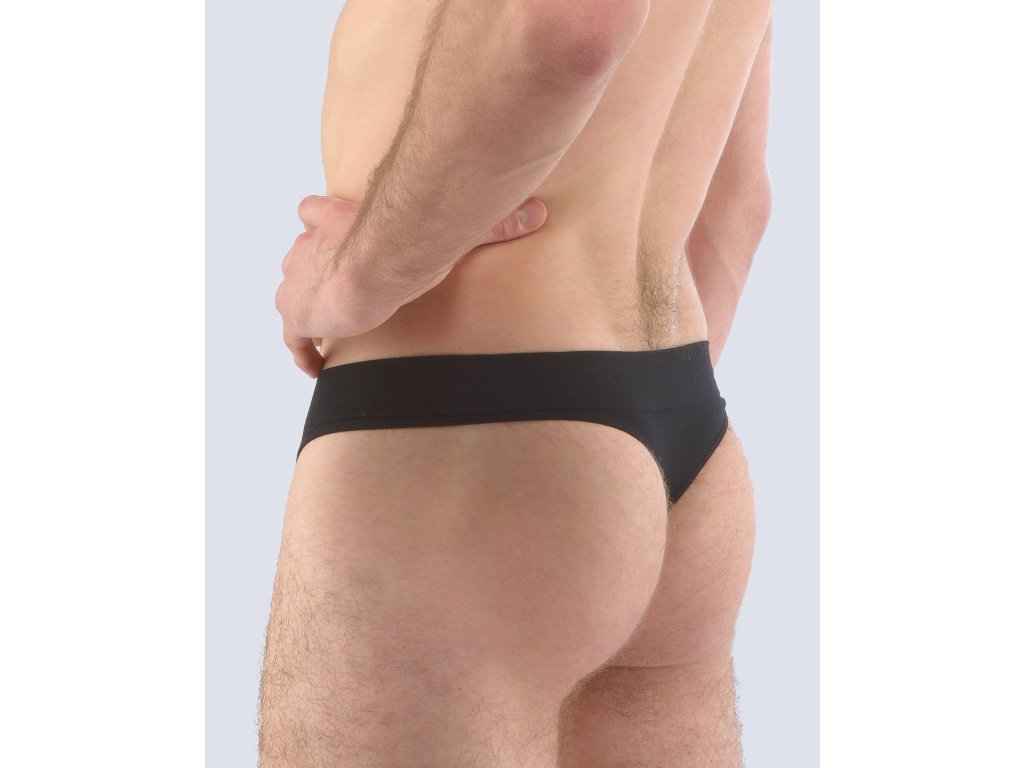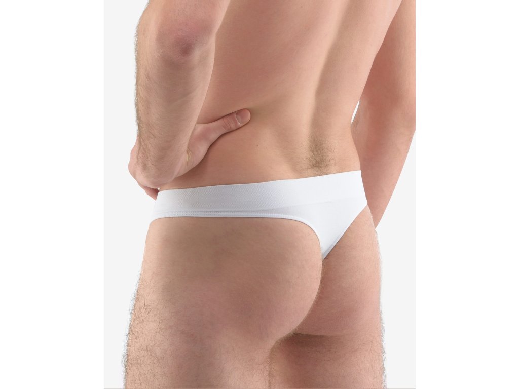 Tanga s užším bokem, pánské bezešvé prádlo. Pasový kraj je zesílený a zapravený bezešvým způsobem. V nohavičkách je zašitá úzká pruženka. Na předním díle jsou tanga tvarována vypletenými zónami. Tanga jsou jednobarevná. V záložce je vypletené logo v šedé barvě. Materiál je vyroben z bambusového vlákna, které je doplněno elastanem. Úplet je velmi jemný a příjemný na nošení. Do každodenního prádla přináší luxusní hedvábný vzhled. Kolekce Bamboo Pure Line se vyznačuje tím, že použitý materiál má vyšší gramáž a vzhledem ke svému složení se vyznačuje výbornou tvarovou stálostí a odolností.