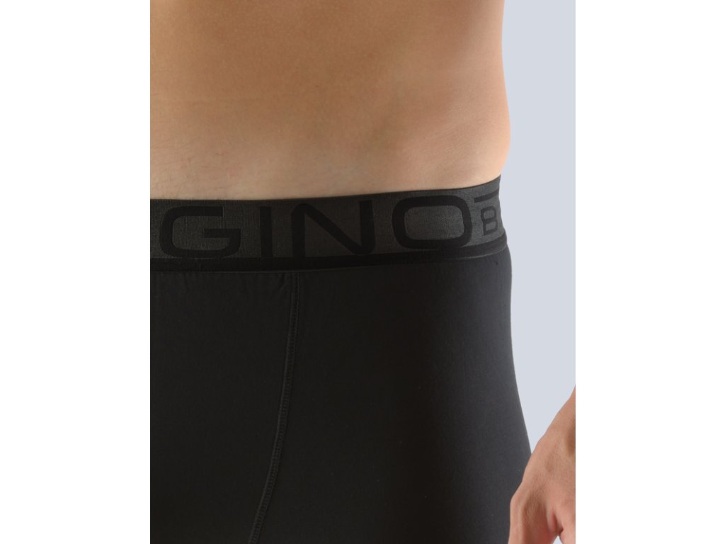 Boxerky s kratší nohavičkou a s našitou gumou, pánské šité prádlo. V pasovém kraji je našitá designová pruženka. Nohavičky jsou začištěné podehnutím. Zadní díl je hladký. Boxerky jsou jednobarevné.