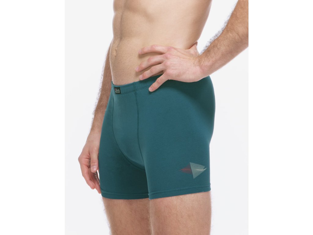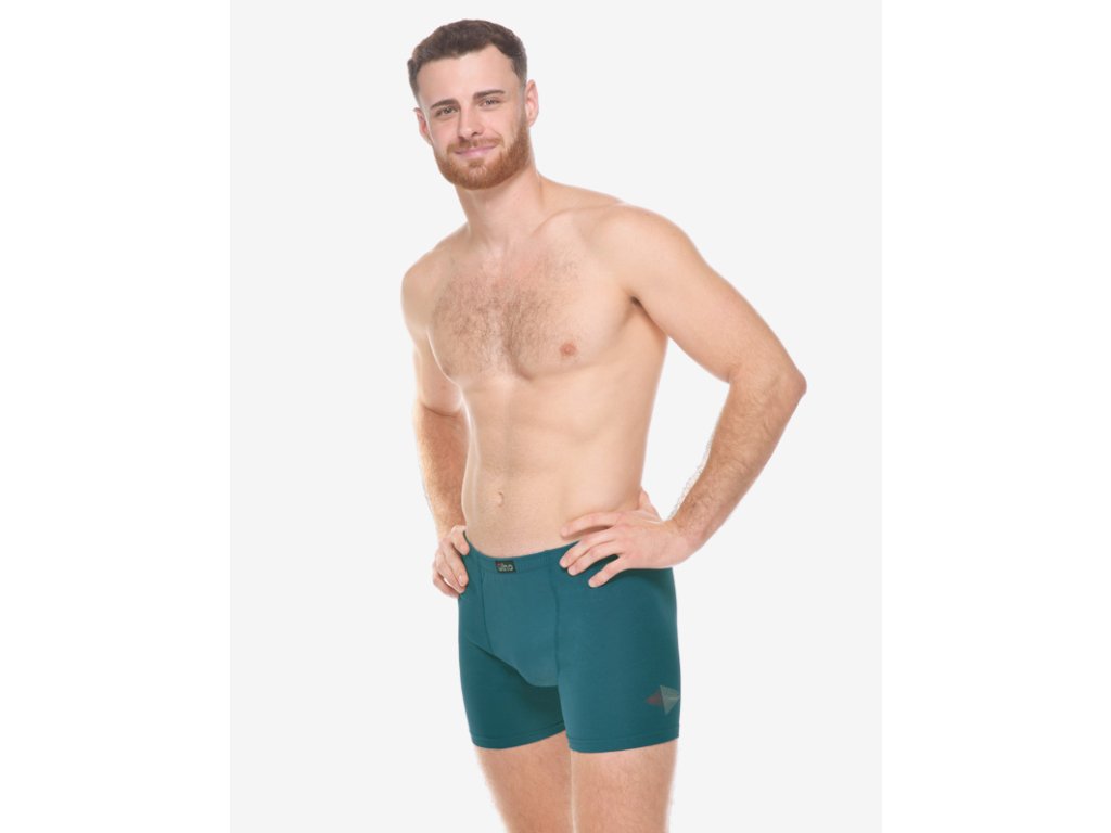 V pasovém kraji je zašitá širší pruženka. Nohavičky jsou začištěné podehnutím. Zadní díl je členěný sedlem se dvěma švy. Boxerky jsou jednobarevné. Na nohavici je umístěn solitér.