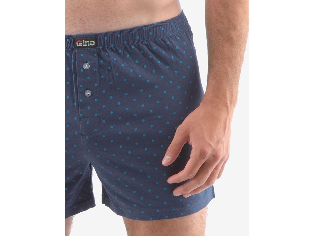 Volné trenky ze 100% bavlny jsou ideální volbou pro každého, kdo má rád klasický pohodlný střih volných trenek a přírodní materiály. Tento kousek má decentní celoplošný vzor a v pase nášivku s logem Gino. Dobře padnoucí pasová guma a rozparek na dva knoflíky jsou samozřejmostí.