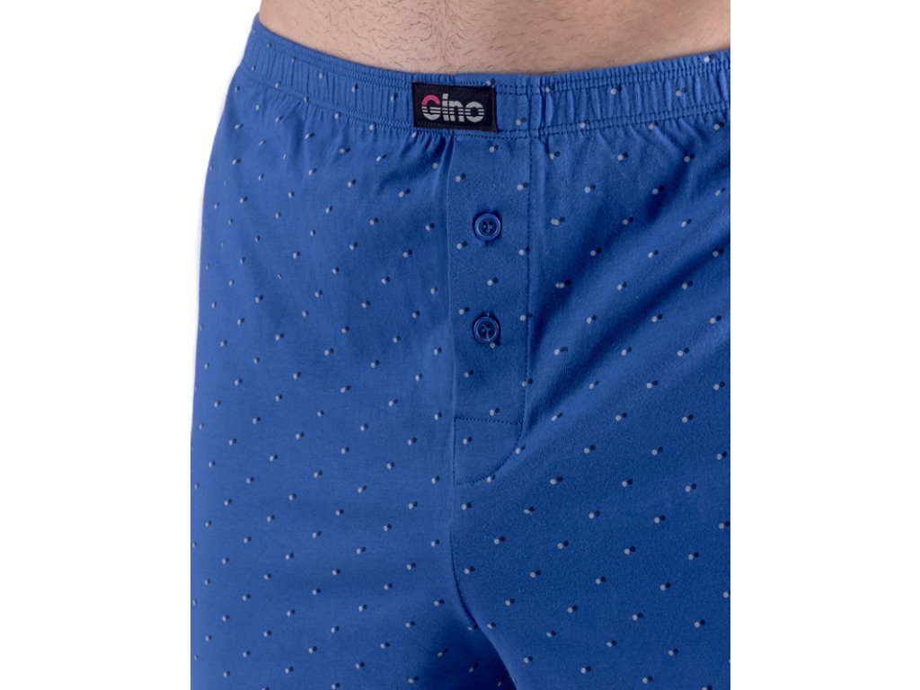Volné trenky ze 100% potěší každého, kdo má rád klasický pohodlný střih volných trenek a přírodní materiály. Dobře padnoucí pasová guma a rozparek na dva knoflíky jsou samozřejmostí. Zadní díl je členěný středovým švem. Tento kousek je potištěn drobným vzorem