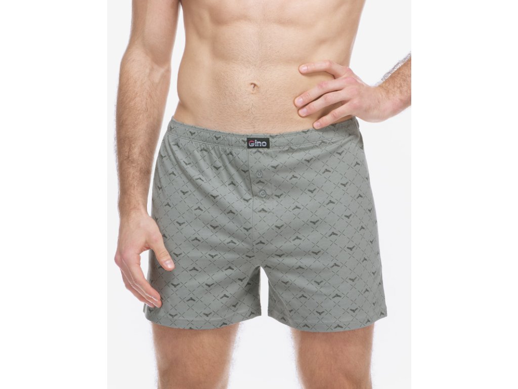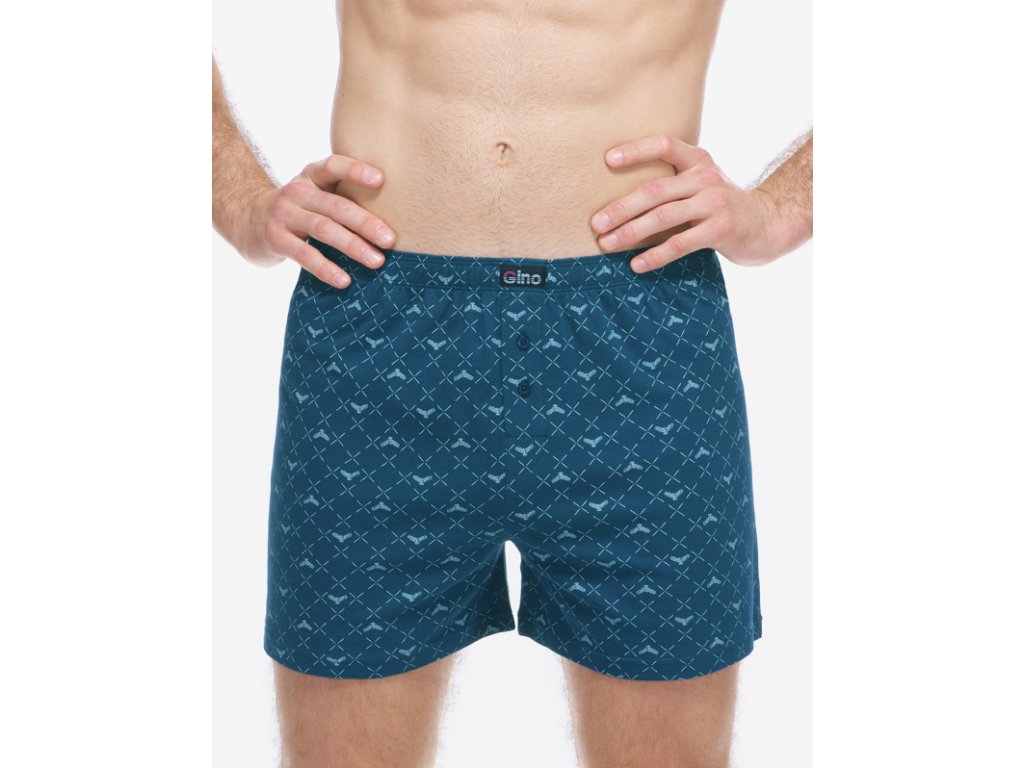 Volné trenky potěší každého, kdo má rád klasický pohodlný střih a přírodní materiály. Dobře padnoucí pasová guma a rozparek na dva knoflíky jsou samozřejmostí. Trenky jsou potištné, v pase mjí nášivku s logem Gino. Jsou vhodné pro každodenní nošení.