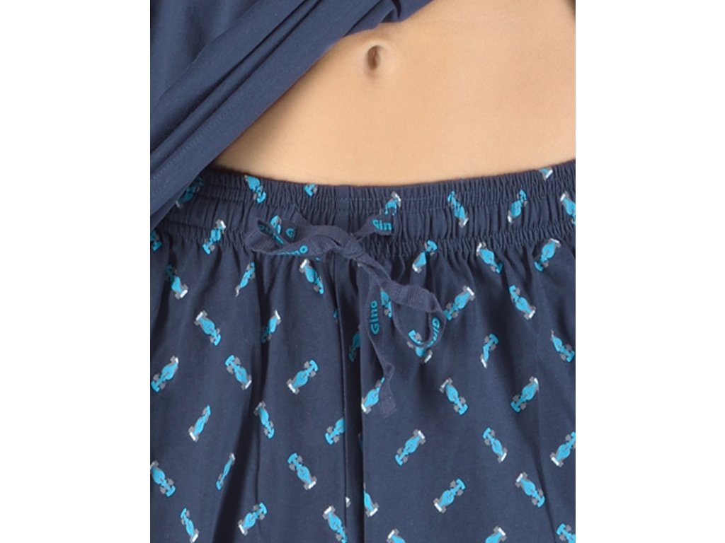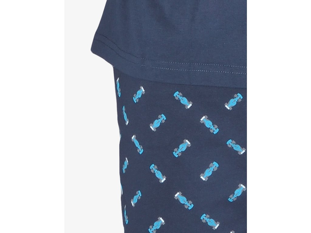 Pánské pyžamo volného střihu z jemného úpletu Vám poskytne pohodlí během spánku. Krátké kalhoty se s motivem formulí doplňuje jednobarevné triko s krátkými rukávy.