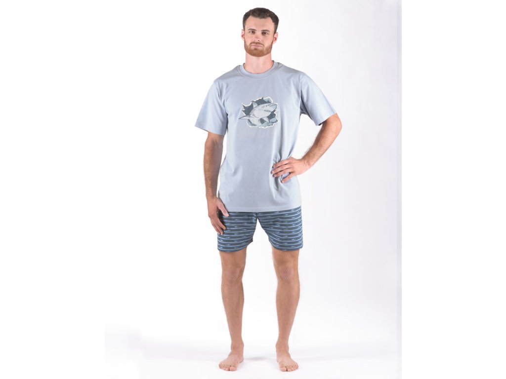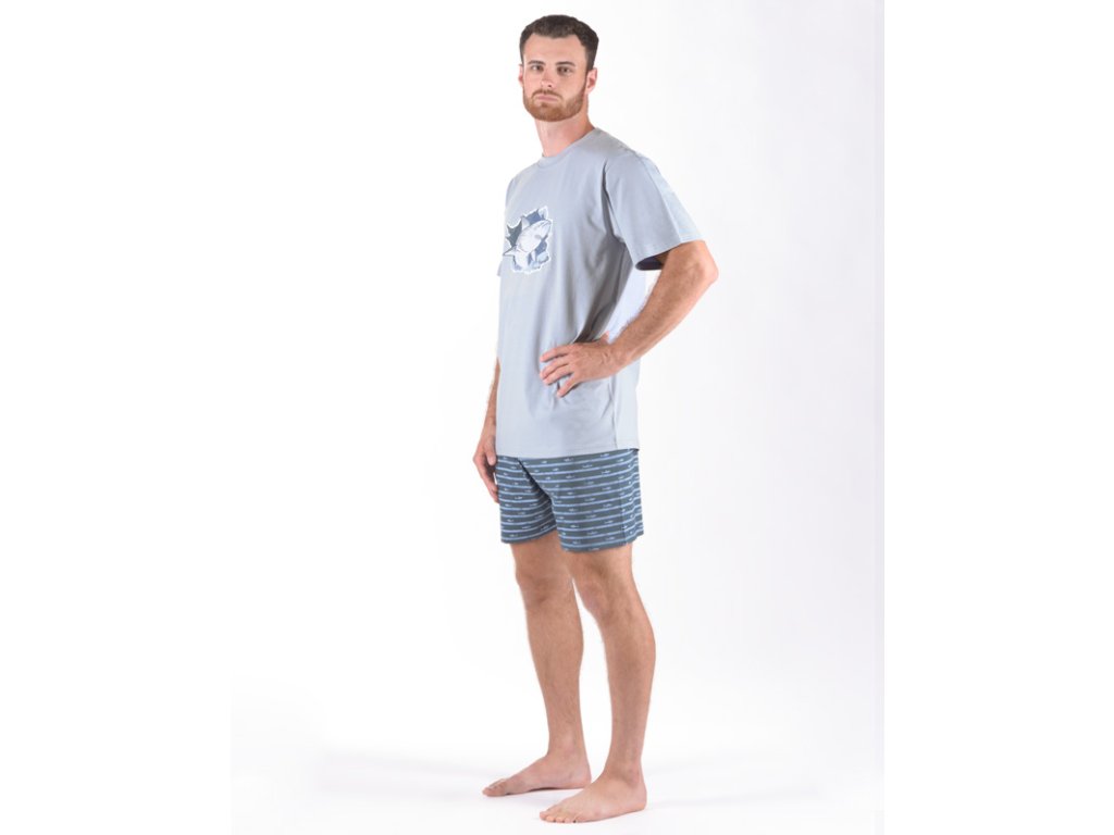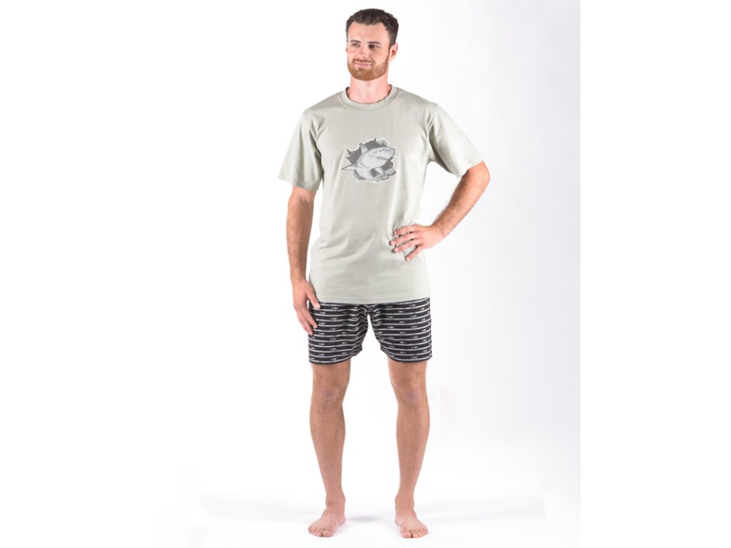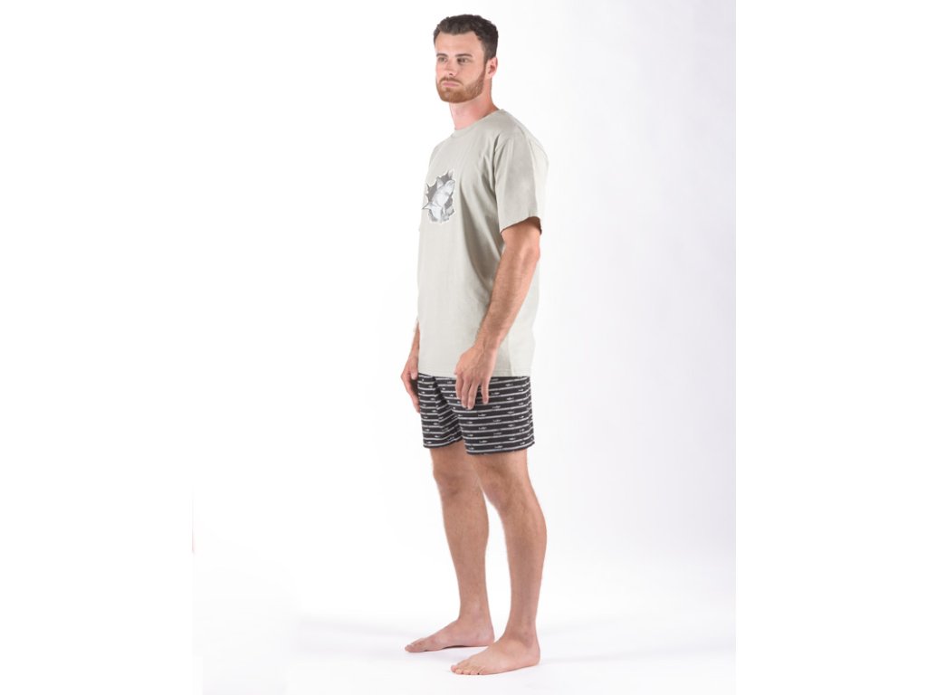 Pánské pyžamo volného střihu z jemného úpletu Vám poskytne pohodlí během spánku. Krátké kalhoty s potiskem doplňuje triko s velkým potiskem na hrudi a krátkými rukávy.