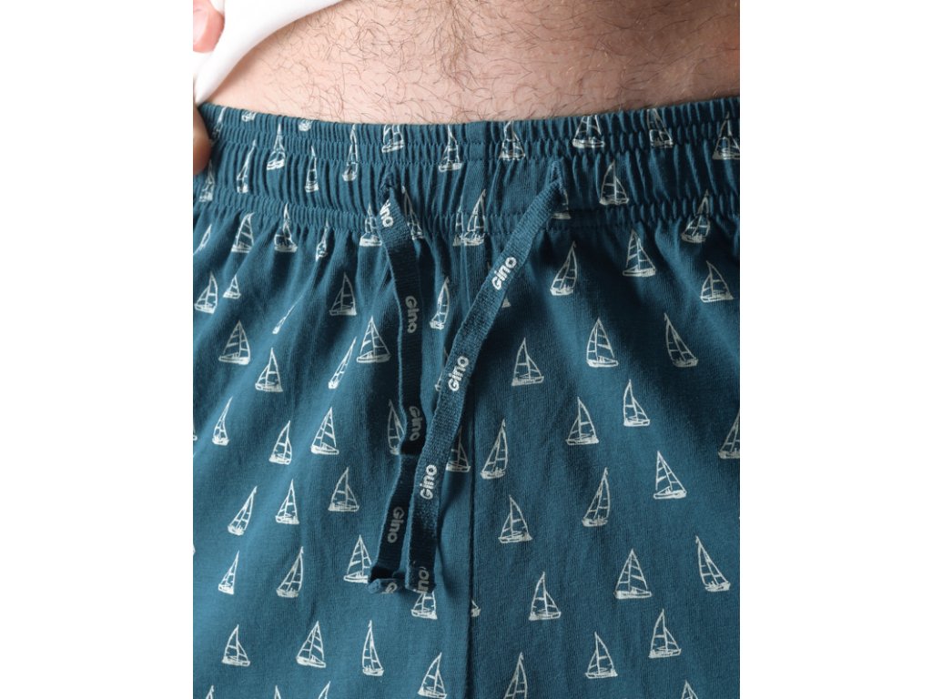 Pánské pyžamo volného střihu z jemného úpletu Vám poskytne pohodlí během spánku. Krátké kalhoty s jednoduchým vzorem doplňuje triko s potiskem na hrudi s krátkými rukávy.