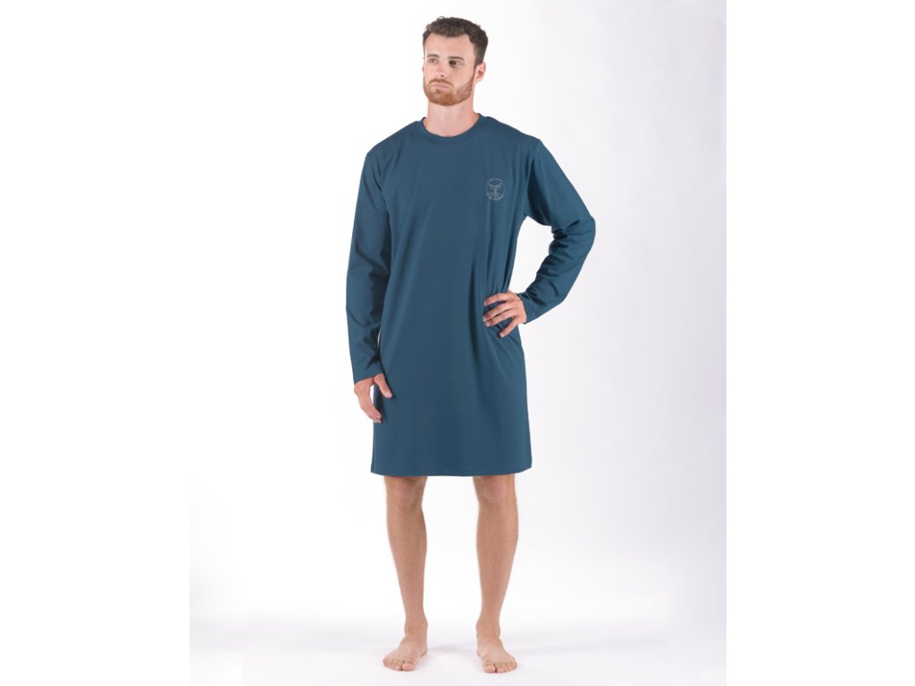 Pánské noční košile z jemného úpletu Vám poskytne jedinečné pohodlí během spánku. Jednobarevná košile je doplněna potiskem na hrudi.