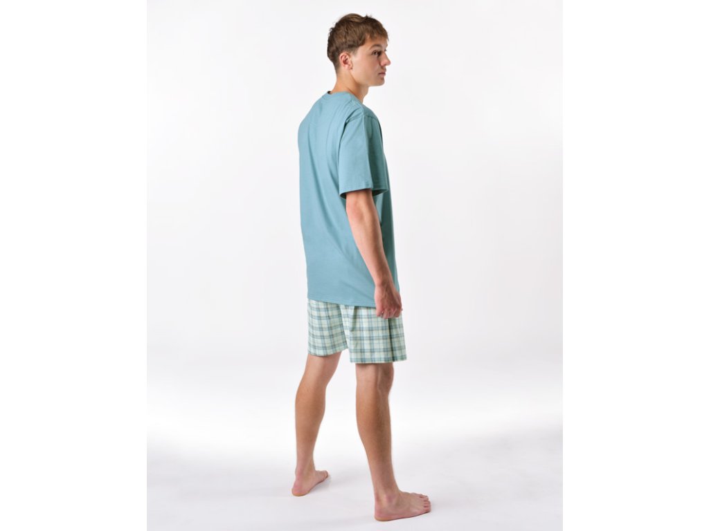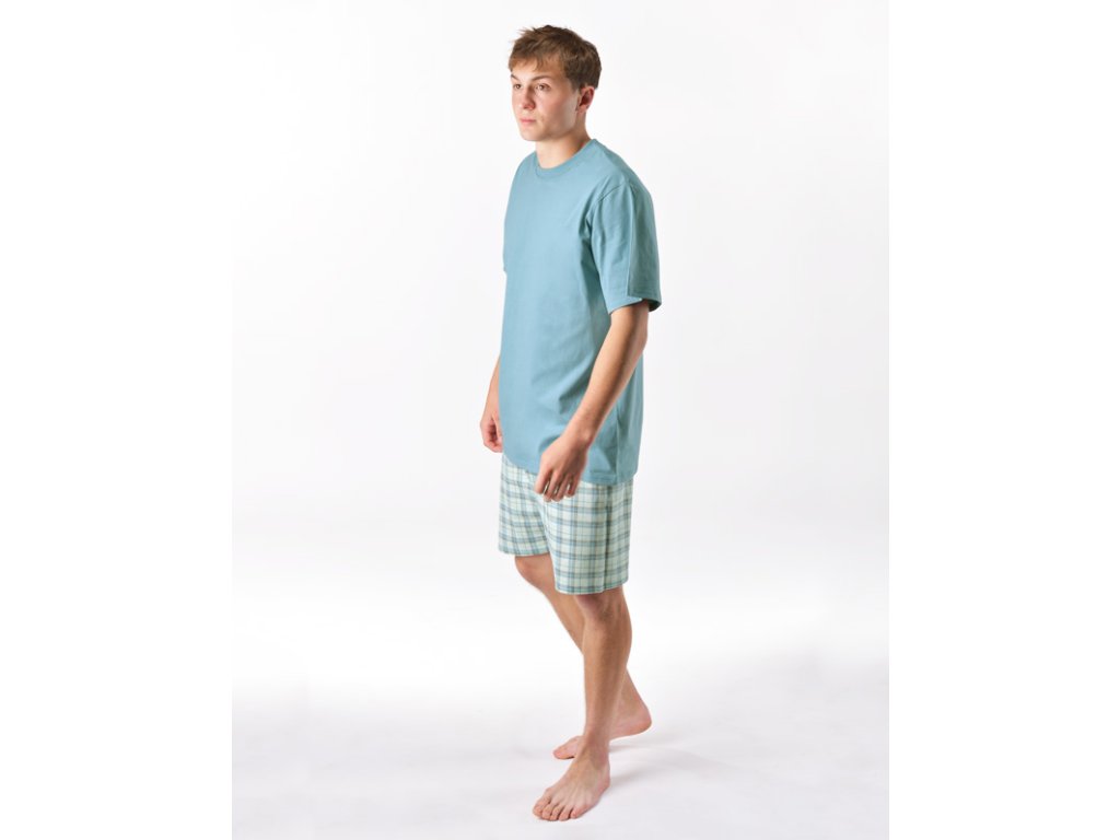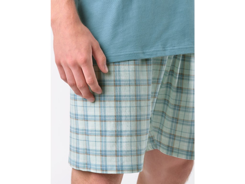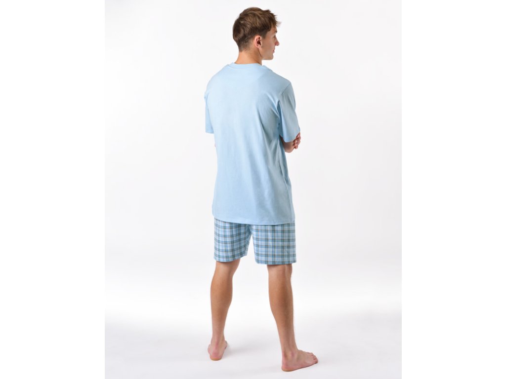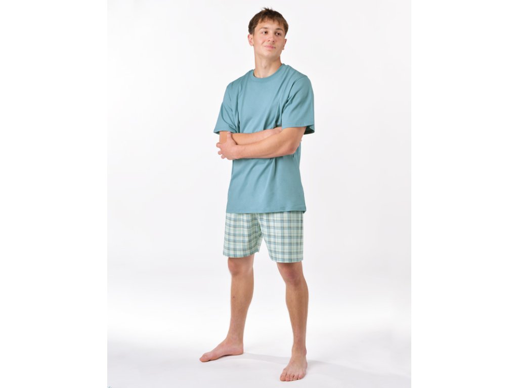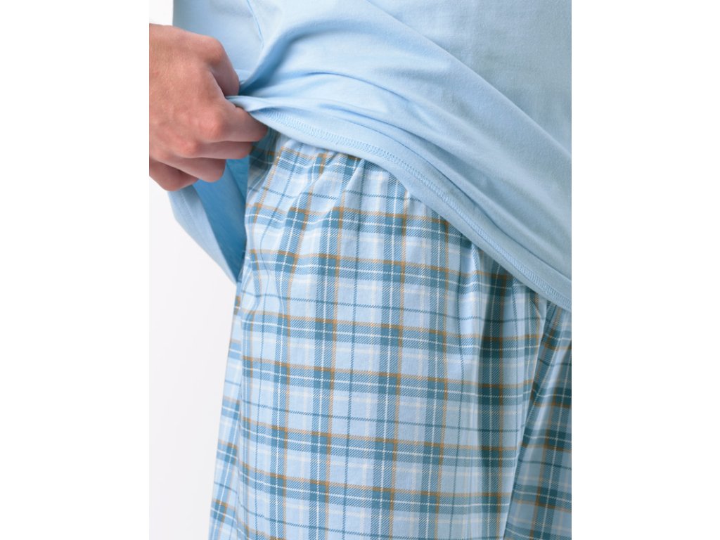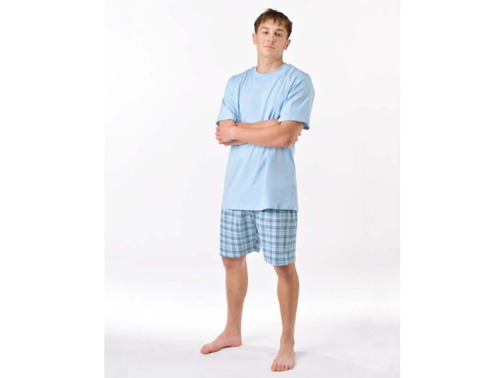 Pánské pyžamo volného střihu z jemného úpletu Vám poskytne pohodlí během spánku. Krátké kalhoty s oblíbeným vzorem káro doplňuje triko s krátkými rukávy.
