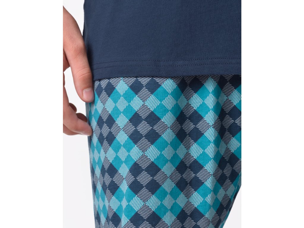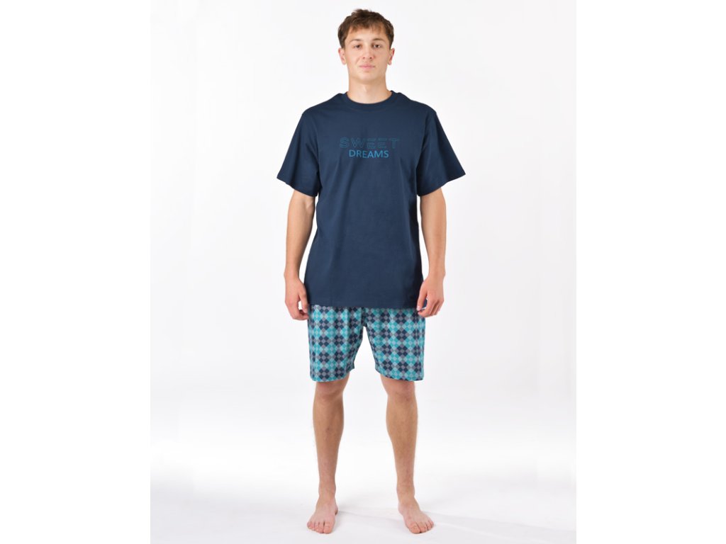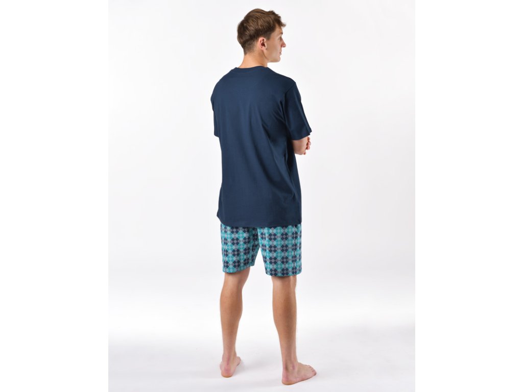 Pánské pyžamo volného střihu z jemného úpletu Vám poskytne pohodlí během spánku. Krátké kalhoty s potiskem doplňuje triko s vetším potiskem na hrudi a krátkými rukávy.