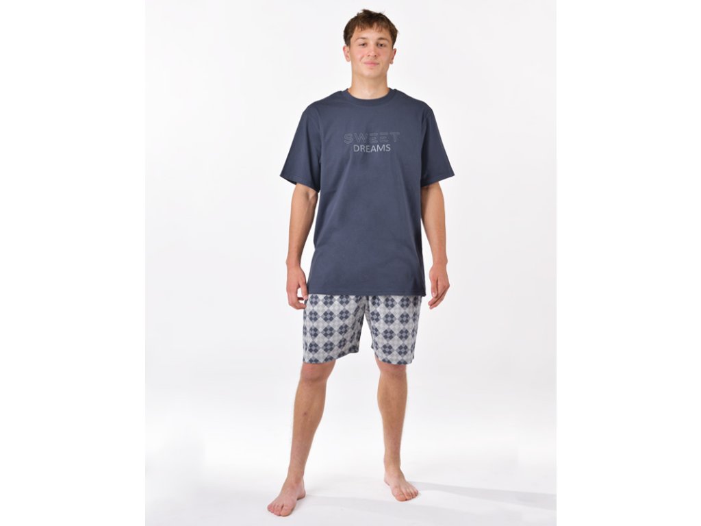 Pánské pyžamo volného střihu z jemného úpletu Vám poskytne pohodlí během spánku. Krátké kalhoty s potiskem doplňuje triko s vetším potiskem na hrudi a krátkými rukávy.