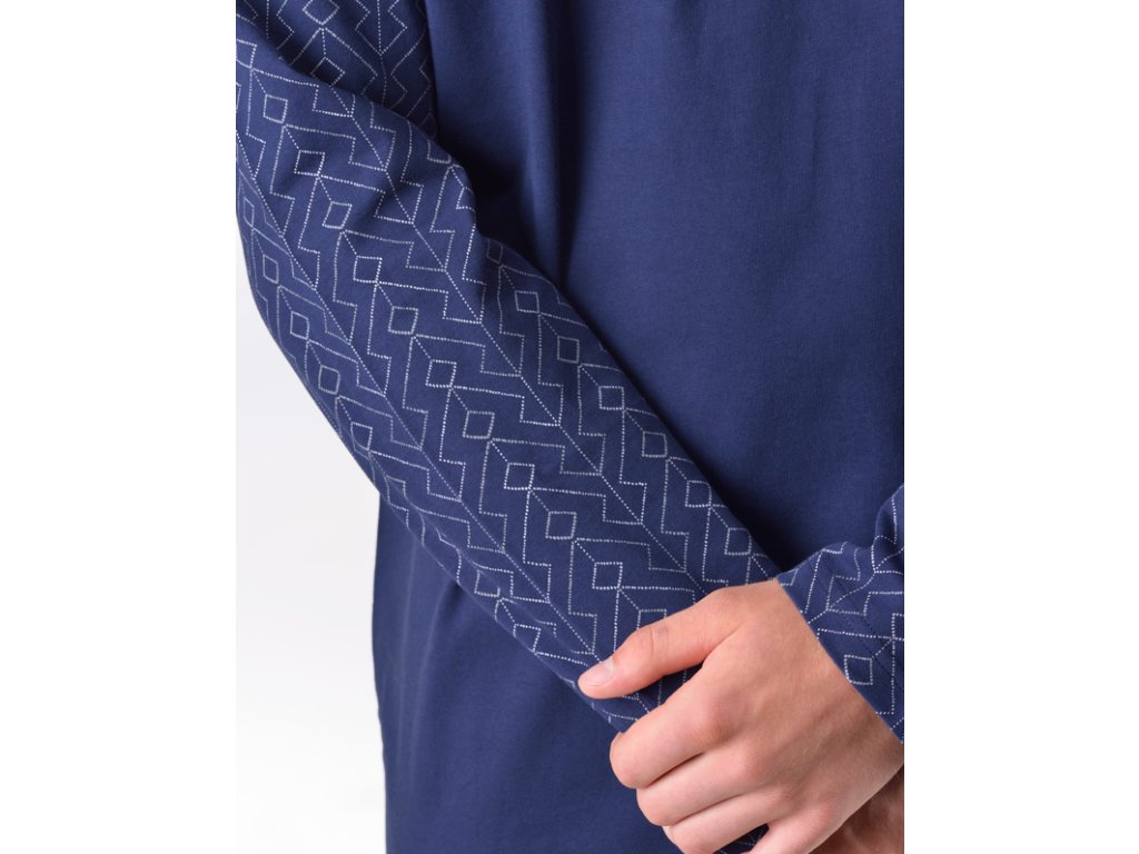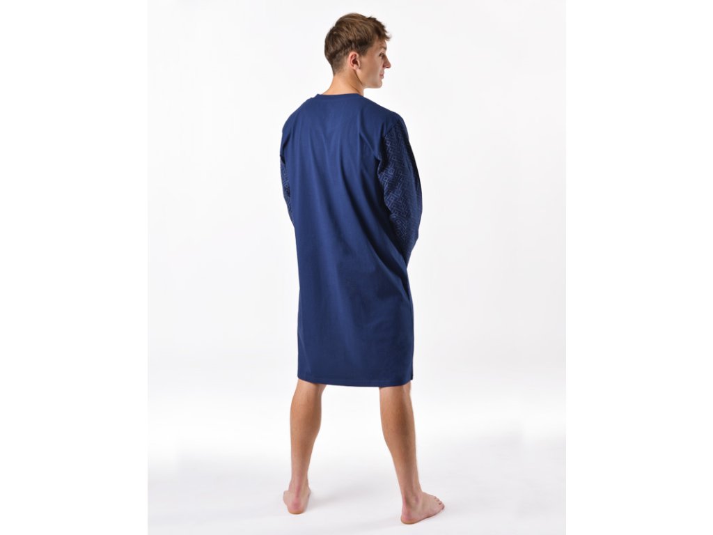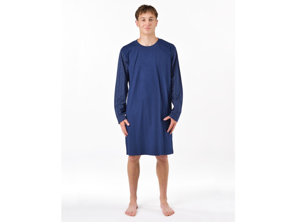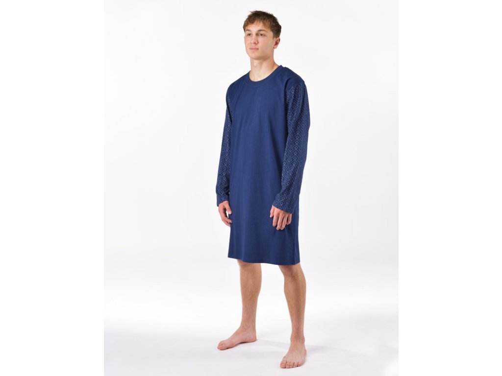 Pánské noční košile z jemného úpletu Vám poskytne jedinečné pohodlí během spánku. Jednobarevná košile je doplněna potiskem na rukávech.