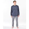 Pánské klasické pyžamo volného střihu z jemného úpletu Vám poskytne pohodlí během spánku. Kalhoty s výraznějším vzorem doplňuje triko s dlouhými rukávy a potiskem na hrudi.