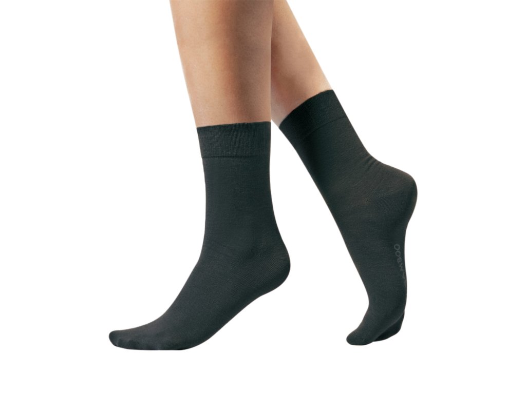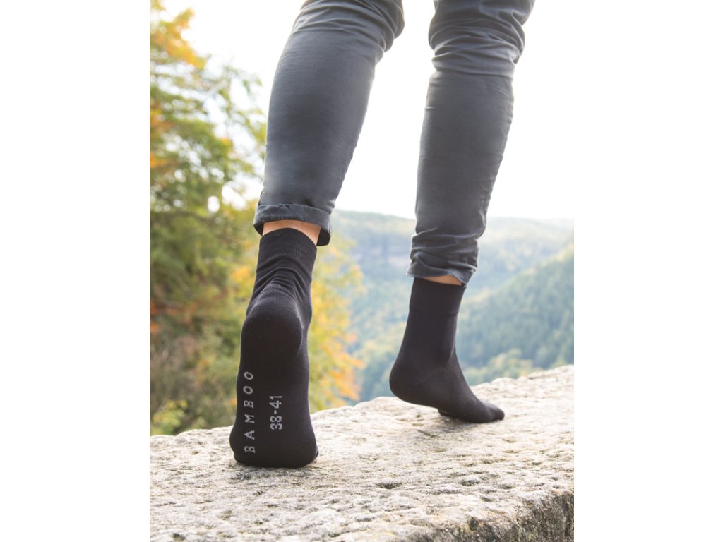 * Ponožky s klasickou výškou jsou vhodné pro chladnější období nebo ke společenským kalhotám. Ponožky jsou jednobarevné, v horní části mají širší pružný lem a na chodidle jsou opatřeny označením velikosti. Materiál je vyroben z bambusového vlákna, které je doplněno polyamidem a elastanem. Bambusové vlákno je vyhledávané pro svou schopnost vydržet dlouho bez zápachu. Elastan dodává ponožkám pružnost. Ponožky jsou bezešvé. Špice je zpracována jemným řetízkováním, takže při nošení netlačí. Dámské a pánské společenské ponožky z bambusového materiálu jsou vhodné pro každodenní nošení. *Konkrétní poměr se může mírně lišit podle barvy/velikosti, vždy však zůstává v uvedeném rozmezí