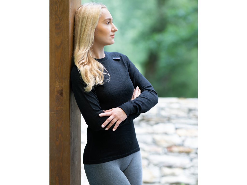 80% Vlna ( Merino ) 20% Polyamid / 100% Polyamid ( Thermolite ) Tričko s dlouhým raglánovým rukávem volnějšího střihu, dámské a pánské šité funkční prádlo. Materiál je vyroben z dvouvrstvé pleteniny, kde horní vrstva je tvořena jemnou vlnou Merino a spodní vrstva je z materiálu Thermolite. Kombinací těchto vrstev vzniká velmi příjemný materiál ideální pro chladné období. Obě vrstvy jsou vzájemně provázány, takže působí dojmem jednoho materiálu. Design teček vzniká použitím různých barev v jednotlivých vrstvách. Sportovní kolekce hřejivé Merino vlny pro zimní období.