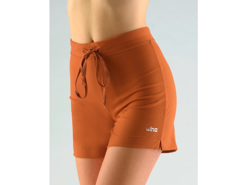 Šortky volnějšího střihu s rozparky na nohavicích, dámské šité sportovní prádlo. V pasovém kraji je zašitá pruženka a protažená šňůrka. V nohavicích jsou u dolního kraje vypracovány krátké rozparky. Šortky jsou jednobarevné. Na nohavici je umístěné logo. Materiál je vyroben z bavlny, která je doplněna Lycrou. Úplet je vhodný pro všechny, kteří hledají přírodní materiály. Lycra přidává materiálu pružnost a zlepšuje jeho tvarovou stálost. Prádlo z tohoto materiálu je vhodné pro každodenní nošení.