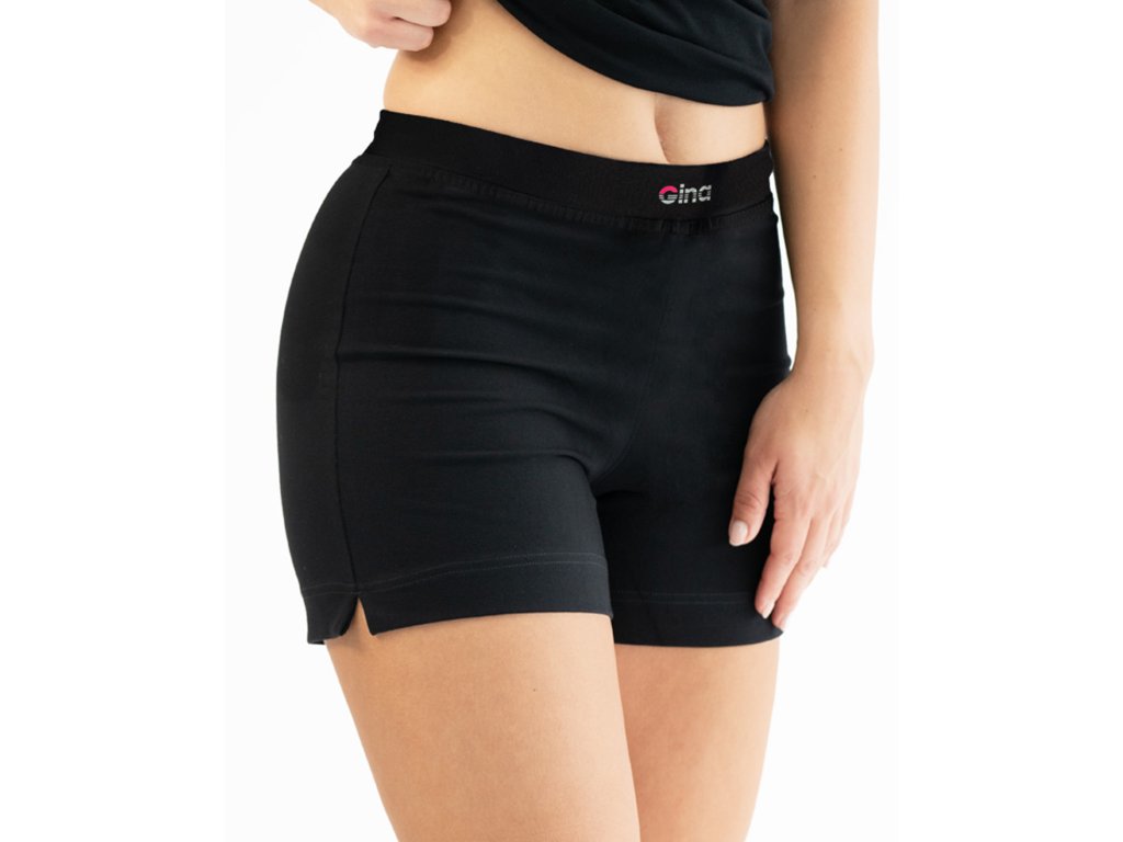 Šortky volnějšího střihu s rozparky na nohavicích, dámské šité sportovní prádlo. V pasovém kraji je zašitá pruženka a našité logo GINA. Šortky jsou jednobarevné. Materiál je vyroben z bavlny, která je doplněna elastanem. Úplet je vhodný pro všechny, kteří hledají přírodní materiály. Elastan přidává materiálu pružnost a zlepšuje jeho tvarovou stálost. Prádlo z tohoto materiálu je vhodné pro každodenní nošení.