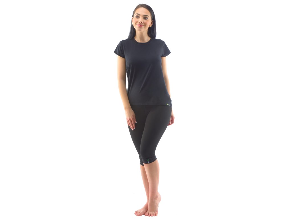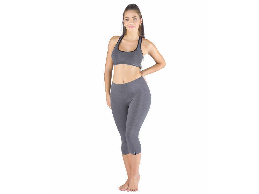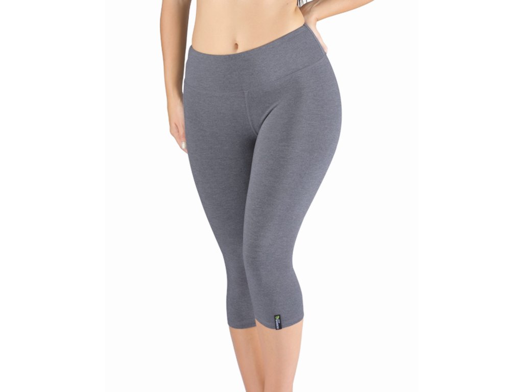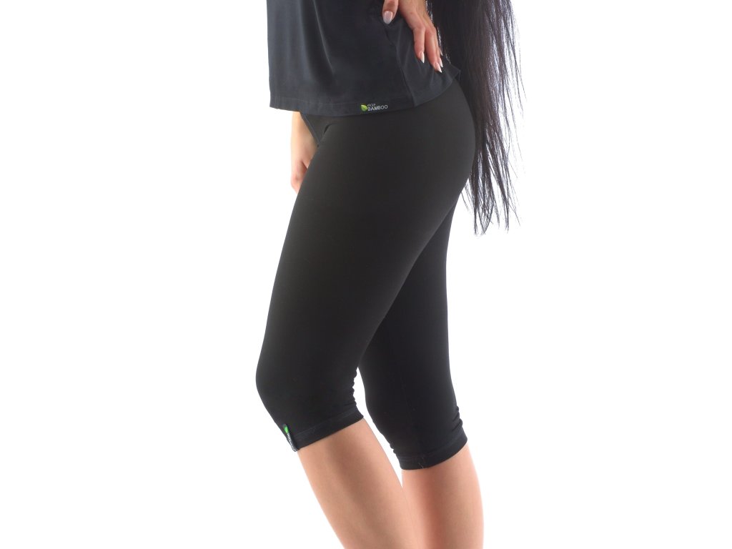 Capri legíny, dámské šité sportovní prádlo. Pasový lem je dvojitý a našitý plochým švem. Legíny jsou jednobarevné. V dolní části levé nohavice je našitý tkaný štítek s logem. V zadním díle je umístěna malá praktická kapsička na drobnosti. Vzhledem k vyšší gramáži použitého materiálu jsou legíny velmi univerzální a vhodné jak pro různé sportovní aktivity, tak pro volný čas. Materiál je vyroben z bambusového vlákna, které je doplněno elastanem. Úplet je silnější, s vyšší gramáží a je velmi příjemný na nošení. Exkluzivní kolekce sportovního bezešvého a šitého oblečení ECO Bamboo Sport doplňuje kolekci ECO Bamboo o výrobky určené pro sportovní aktivity. I v této kolekci jsme se zaměřili na ekologické zpracování jak samotného vlákna, tak postupů při barvení a konečné úpravě textilie. Prádlo je baleno v ekologických sáčcích a doplněno krabičkou bez laminace.
