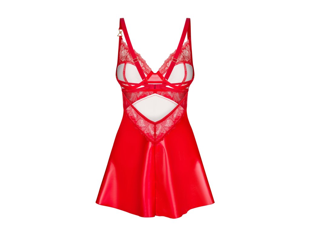 Aliosa Chemise ● noční košilka a tanga v červené barvě ● hladká, lesklá tkanina v kombinaci s elegantní krajkou ● výřez pod poprsím krásně zdobí celou kreaci ● nastavitelná ramínka zajišťují dokonalé přizpůsobení ● precizní detaily vám dodají pocit výjimečnosti bez ohledu na okolnosti ● zapínání na háčky a oči na zádech ● kostice v košíčcích ● visačka se znakem Obsessive ● vysoce kvalitní tkaniny