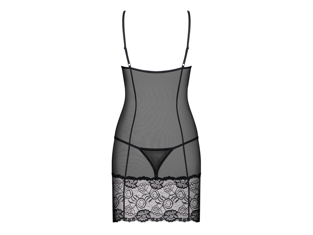 Alluria Chemise ● sada s tangy z průhledné látky ● nastavitelná ramínka pro snadné nasazení ● svůdné košíčky z jemné krajky ● kostice v košíčcích - zvednuté a zvýrazněné poprsí ● aplikace průhledné krajky pod prsy - zajímavý motiv aplikace průhledné krajky pod poprsím - zajímavý motiv ● svislé švy opticky zeštíhlují siluetu ● krajkou zdobená spodní část - dodává šarm a zdobí hýždě ● příjemná na dotek, pružná tkanina