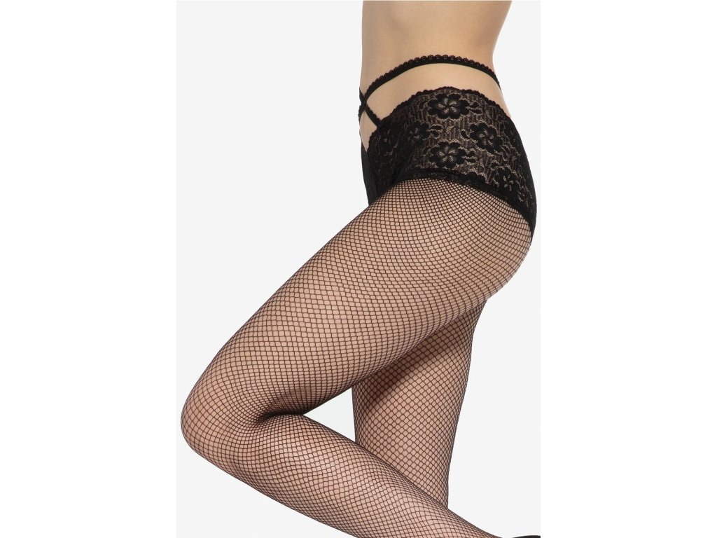 Ars Amandi Dione punčocháče ● sexy, kombinace klasických síťovaných punčoch s ozdobnými kalhotkami ● svůdný síťovaný tvar se středně velkou síťovinou ● holá kůže prosvítající mezi vlákny příze dodává pikantnost ● erotický charakter celku dodávají kalhotky ● hustě tkaný květinový motiv je v horní části zakončen křížícími se stuhami krajka nádherně leží na těle a zvýrazňuje oblost hýždí ● přiložené kalhotky jsou pohodlné na nošení a zajišťují volnost pohybu ● bez vyznačené oblasti prstů ● vysoce kvalitní materiál je odolný proti náhodnému zatažení ● ideální jako výjimečný dárek ● atraktivní dárková krabička v podobě knihy