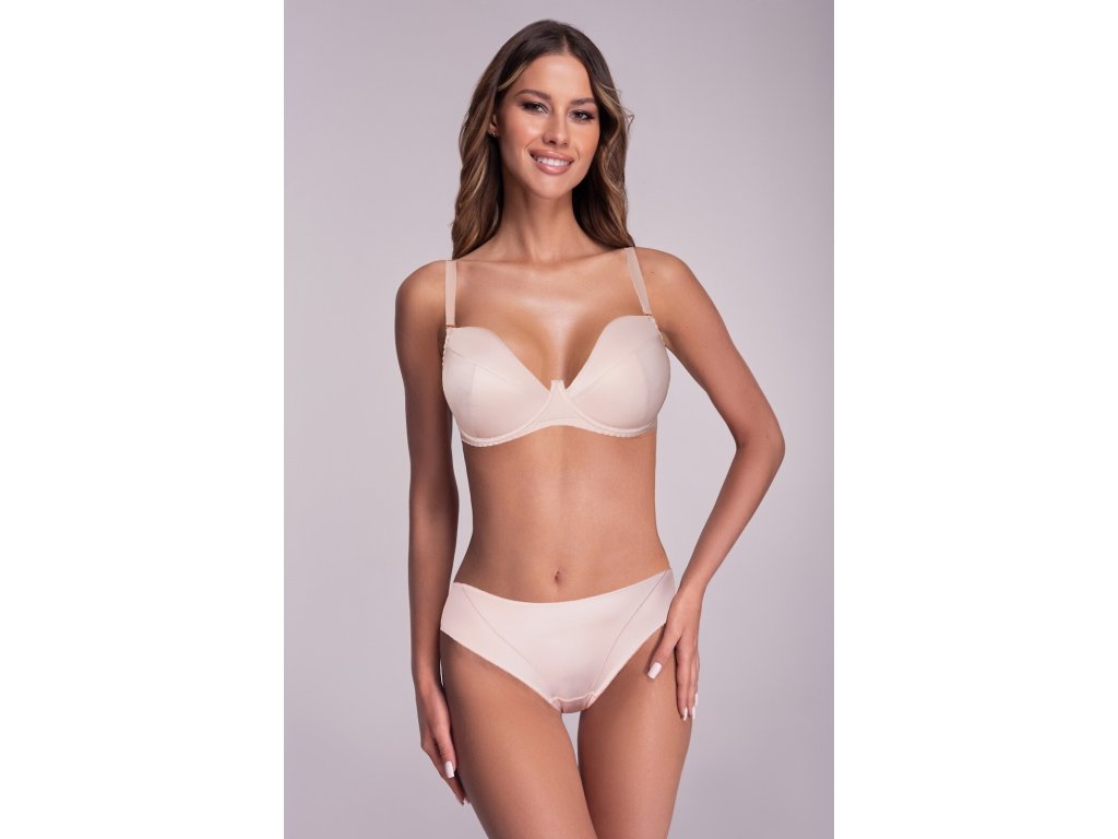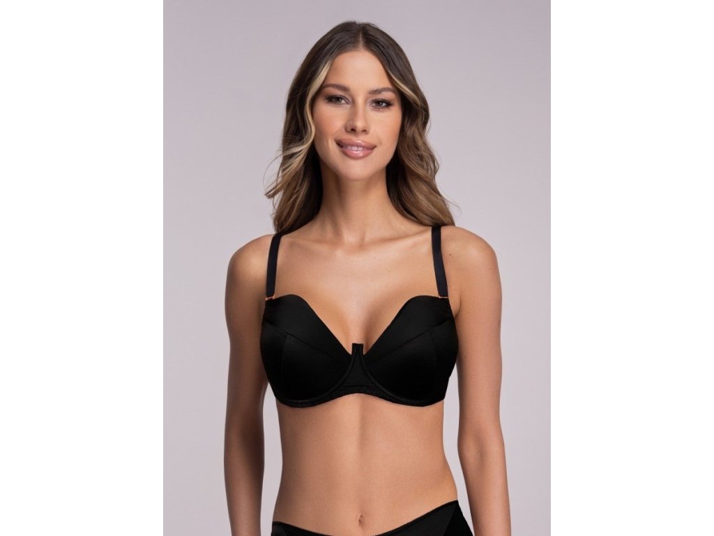 AV 2202 Push up podprsenka ● dokonale střižené a vypasované push up košíčky v moderním tvaru ● vyjímatelné push up vycpávky ● efektní snížená linie horního košíčku decentně prohlubuje dekolt ● hladké košíčky z mikrovlákna se svislým a šikmým střihem ● drátky obepínající prsa v modelu, hladké boky a záda z elastické lycry bez bočních velrybích kostic ● odnímatelná, nastavitelná ramínka ● krásně zvýrazní dekolt, dokonale shromažďují prsa ● zapínání na dva háčky s třístupňovou regulací