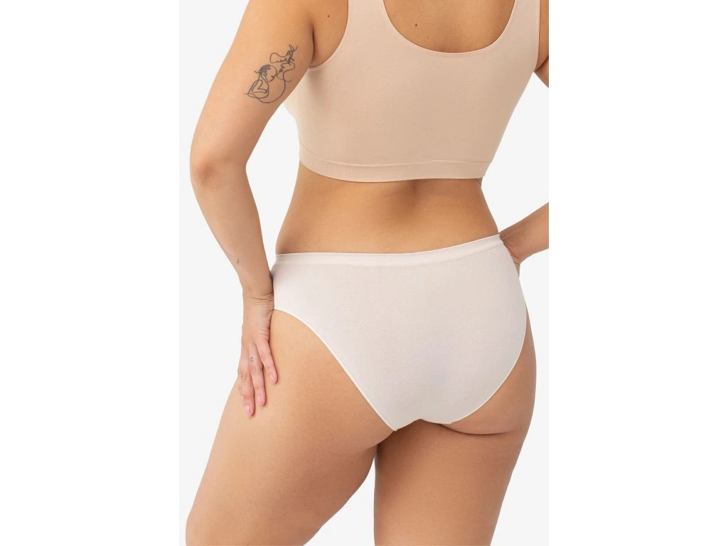 Bezešvé bavlněné bikiny ● nadčasový model bikin ● klasické, plné a přírodní ● vyrobené z měkké pleteniny ● zakončené netlačící gumičkou ● přírodní, měkký materiál z bavlněných vláken ● vyrobené bezešvou technologií ● žádné švy, žádné oděrky ani podráždění pokožky ● krásně obepínají hýždě ● perfektně přiléhají k tělu bez zbytečného tlaku ● hladký model pro celý rok, kombinující bavlněný základ s bezešvým povrchem ● jednoduchý design bez vzoru z nich činí praktickou volbu do vašeho každodenního šatníku ● bezešvé, pohodlné a netlačící – ideální pro každodenní nošení