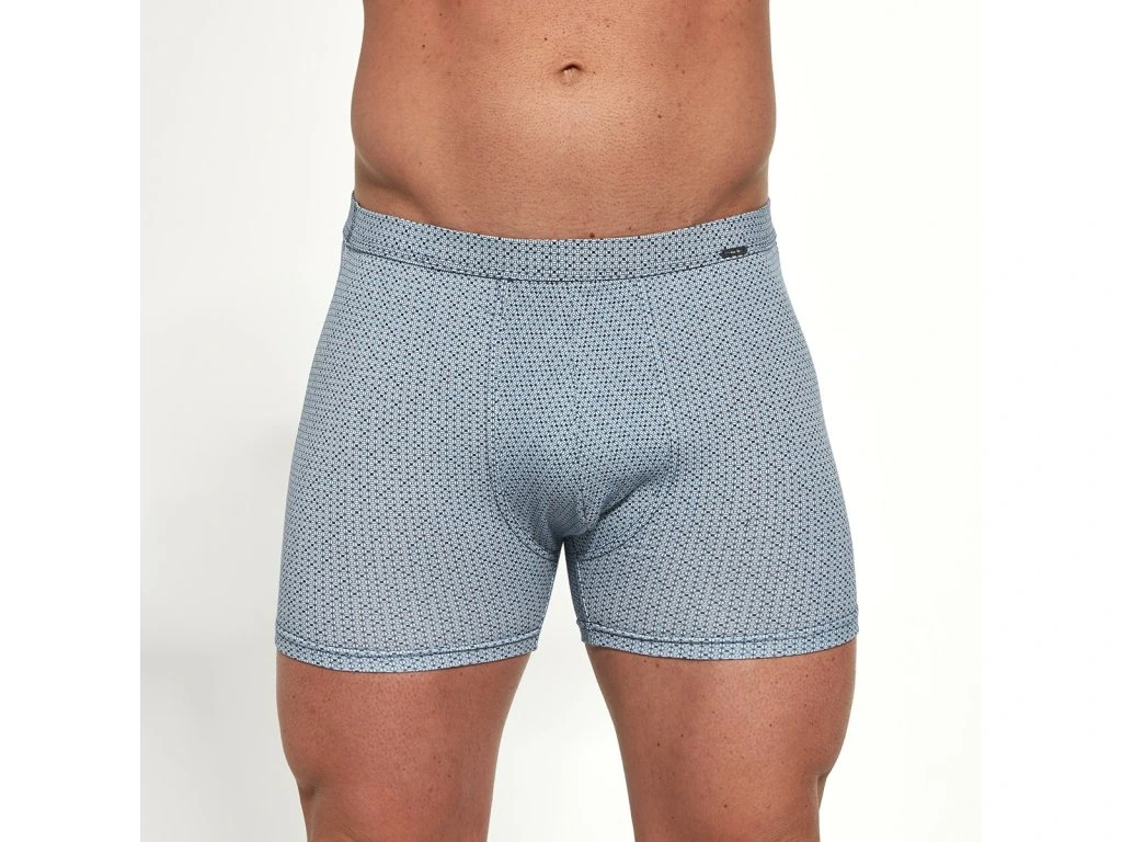 Tyto pohodlné pánské boxerky Prime v modré barvě s decentním vzorem jsou vyrobeny z vysoce kvalitního úpletu s přídavkem Lycry. Materiál je měkký a velmi příjemný na dotek. Střih jemně obepíná tělo a zároveň poskytuje naprosté pohodlí. Netlačící zakončení nohavic, ploché švy a trojrozměrný klínek zajišťují maximální pohodlí. Tyto pánské boxerky od Cornette jsou baleny v esteticky příjemné krabičce, což z nich dělá perfektní dárek.