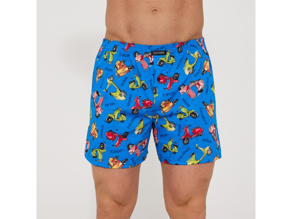 Boxerky Classic 001/185 ● volný střih, rozepínání na knoflíky ● s designem ikonických skútrů Piaggio Vespa ● z vysoce kvalitní bavlny ● osvědčí se jako tradiční spodní prádlo i na spaní ● pohodlné, pohodlný, široký elastický pas z měkkého materiálu ● rozepínání na knoflíky ● úplet je mimořádně jemný k pokožce, příjemný na dotek ● přírodní bavlna, umožňuje pokožce volně dýchat ● zajistí naprostou volnost pohybu ● baleno v atraktivní krabičce ● ideální jako dárek