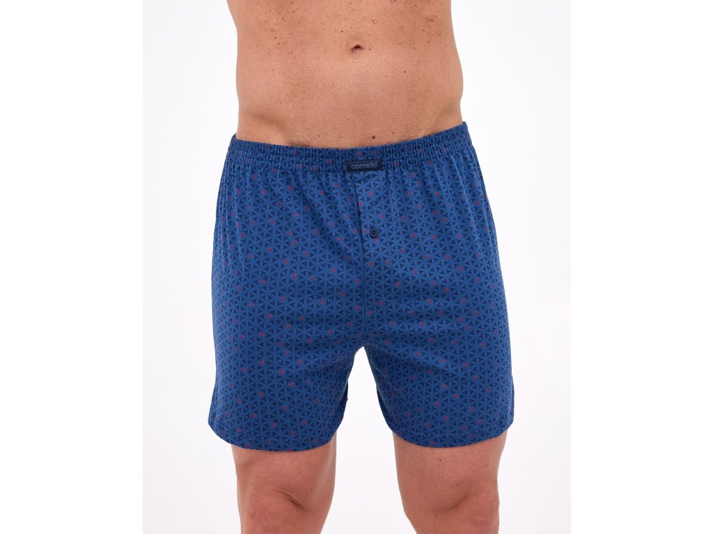 Pohodlné boxerky 002/327 ● volný střih ● s jemným geometrickým vzorem ● z vysoce kvalitní bavlny ● hodí se jako tradiční spodní prádlo i na spaní ● pohodlné, pohodlný, široký elastický pas lemovaný měkkým materiálem ● zapínání na knoflíky ● úplet je mimořádně jemný k pokožce, příjemný na dotek ● přírodní bavlna umožňuje pokožce volně dýchat ● zajistí naprostou volnost pohybu ● baleno v atraktivní krabičce ● ideální jako dárek