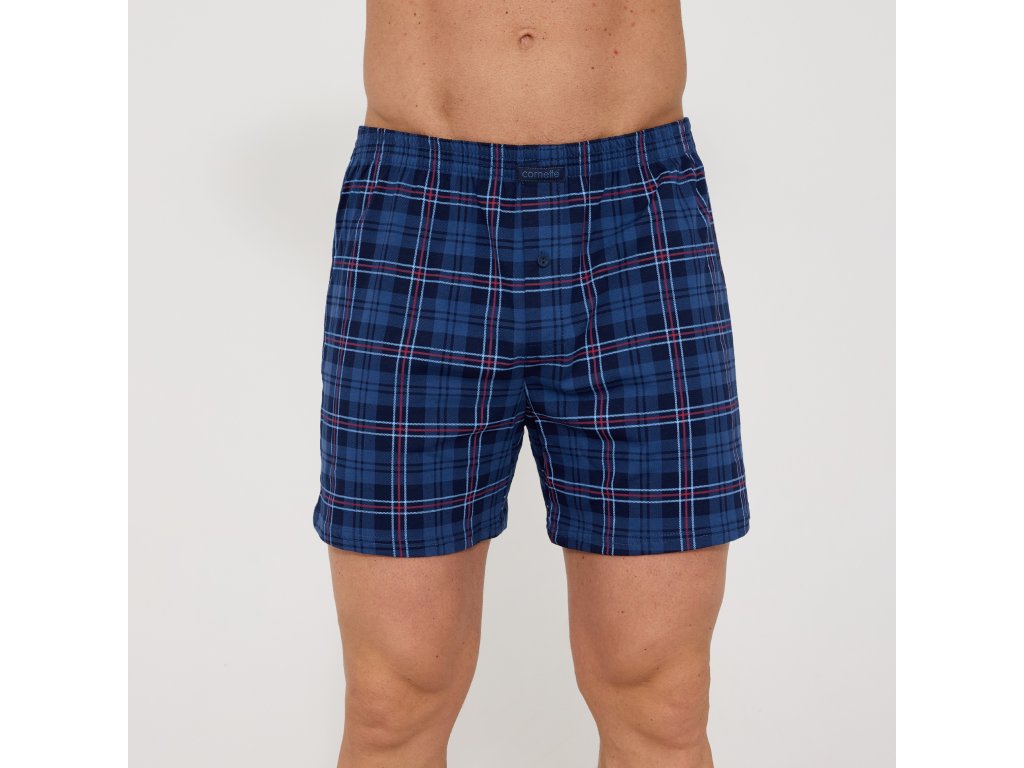 Pohodlné boxerky 002/338 ● volného střihu ● v tlumeném tmavě modrém odstínu ● v elegantním kostkovaném vzoru ● z kvalitní bavlny ● poslouží jako tradiční spodní prádlo i na spaní ● pohodlné, pohodlný, široký elastický pas z měkkého materiálu ● zapínání na zip s knoflíkem ● látka je mimořádně jemná k pokožce, příjemná na dotek ● přírodní bavlna umožňuje pokožce volně dýchat ● zajistí naprostou volnost pohybu ● baleno v atraktivní krabičce ● ideální jako dárek
