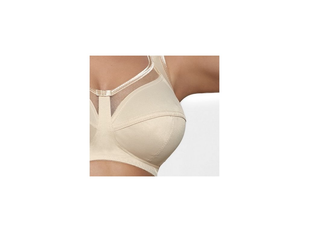 582 Podprsenka Maja ● měkká, bez kostic ● typ full-cup, pokrývající celá prsa ● pohodlná pro každodenní nošení ● konstrukce bez kostic poskytuje dokonalé shromáždění a podporu prsou ● košíčky podšité bavlněnou síťovinou nedráždí citlivou pokožku ● široká ramínka podšitá houbou, tradiční ramínka na zádech s nastavitelným systémem pásků pro dokonalé přizpůsobení ● ramínka pomáhají pozvednout poprsí, aniž by zatěžovala ramena ● spodní část košíčků má svislý střih pro pozvednutí poprsí ● horní část košíčků s vkusným šifonem ● vhodné pro ženy s velkým poprsím