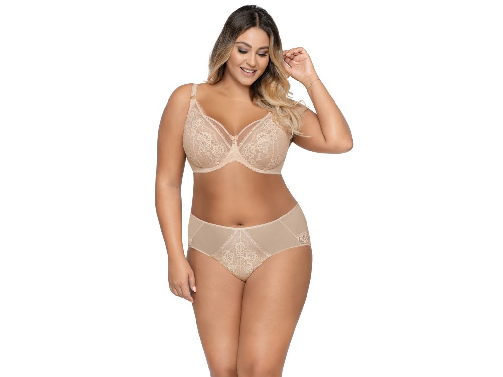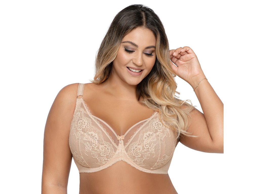 AV 1824 ● nejprodávanější měkká podprsenka ● vyrobená z kombinace tělového tylu a měkkého úpletu s květinovým vzorem ● díky sníženému můstku je vhodná pro stylizaci s výstřihy ● širší dráty netlačí v podpaží ● navržená tak, aby objala i velké poprsí, navržen tak, aby objal i velká prsa, spojil je a dobře podepřel ● krásné lemování zvýrazňující linii prsou ● z měkkého úpletu s květinovým vzorem ● podšitý stabilním tylem ● košíčky pevně objímají prsa, ramínka - neodnímatelná, šířka přizpůsobená velikosti ● ozdobná ramínka ve výstřihu ● nastavitelná ramínka - kovový, antialergický regulátor ● dvouřadé/třířadé zapínání s třípolohovými háčky ● konstrukce K-1824