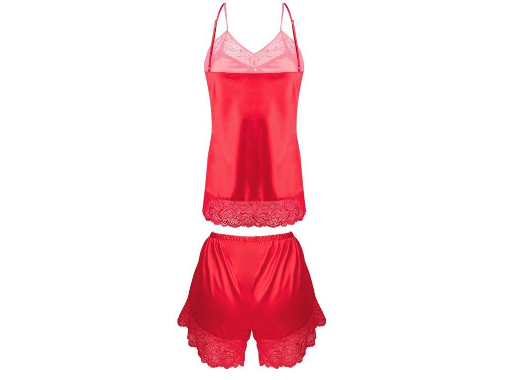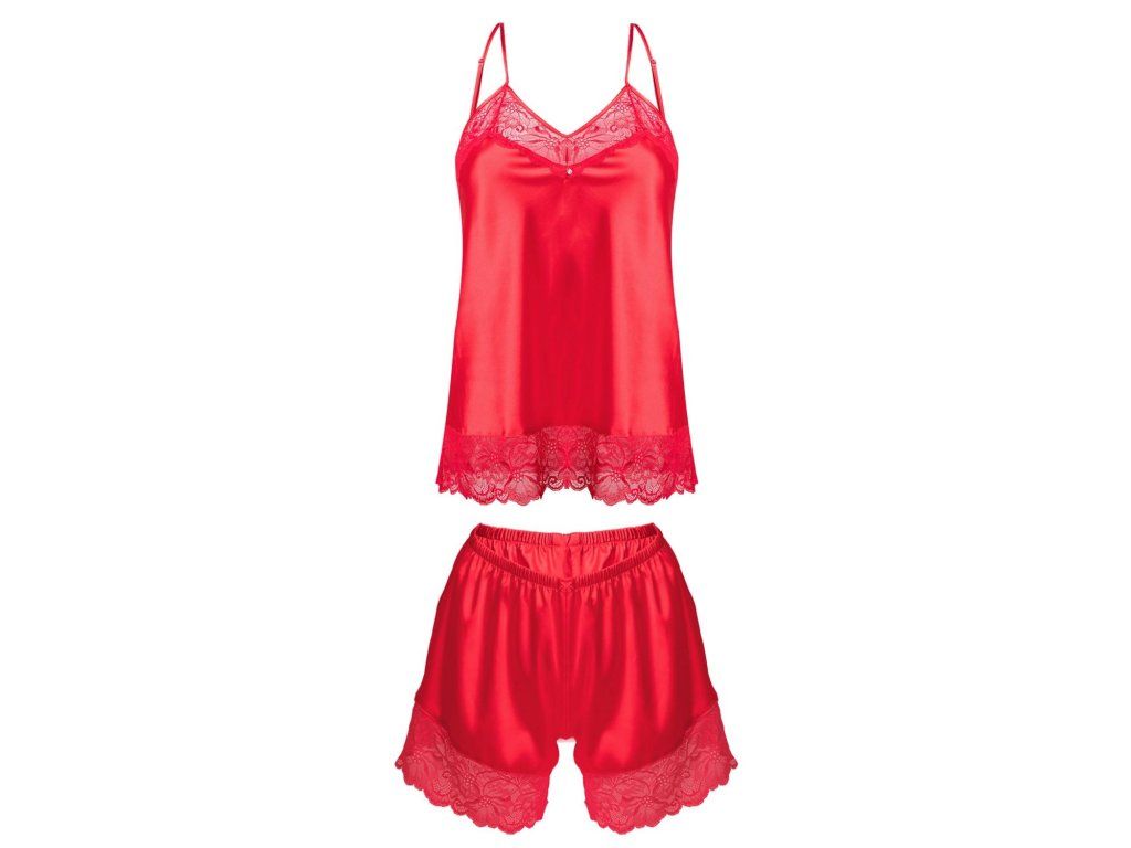Sada Brenda ● dvoudílná sada se skládá z topu a kraťasů ● vyrobena z jemného saténu ● výstřih, top a kraťasy jsou lemovány krajkou ● uprostřed poprsí je ozdobný diamant ● tenká ramínka spodničky jsou nastavitelná ● ideální pro romantický večer, zvláštní příležitost, ale i pro každodenní nošení