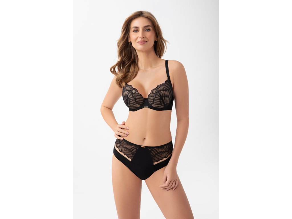 Celia K953 Full Cup Bra Black ● polstrovaná, konstrukce G140 ● určena pro ženy s malým a středním poprsím ● zajišťuje zvedací efekt a shrnutí poprsí dovnitř ● třídílné košíčky z pěny potažené elastickou krajkou ● zadní díl z mikrovlákna zajišťující velmi dobré přizpůsobení ● boční velrybí kostice zabraňující odrolování látky ● v závislosti na velikosti dvouřadé nebo třířadé zapínání na háčky potažené mikrovláknem s třístupňovou regulací obvodu ● odepínací, nastavitelné ramenní popruhy ve dvou šířkách, které vám dávají možnost upevnění různými způsoby ● kovové prvky ve světle zlaté barvě (neobsahují nikl)