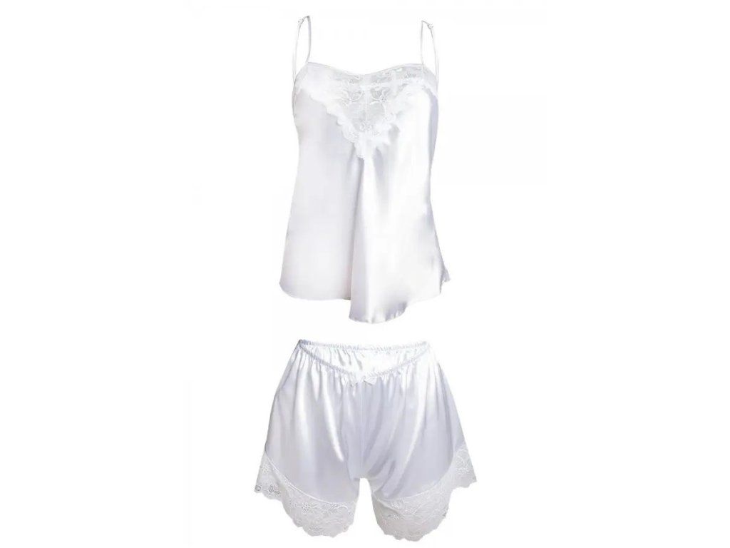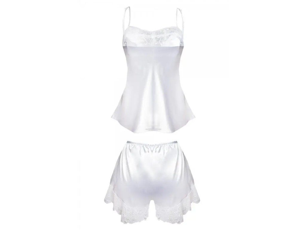 Souprava Cynthia ● elegantní, sexy ● dvoudílná s ozdobnou krajkou ● tenká a nastavitelná ramínka ● bílá krajka ● jemný saténový materiál ● luxusní svatební prádlo