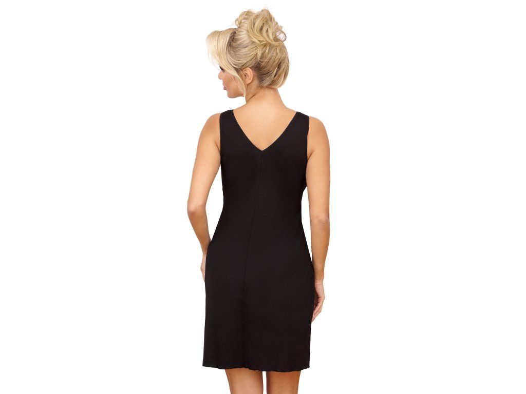 Silvana Dámská košile ● na širokých krajkových ramínkách ● z měkké viskózy ● elastická pod prsy s jemným řasením ● hluboký výstřih do V vpředu i na zádech ● výstřih a poprsí bohatě zdobené krajkou přecházející v ramínka ● měkké košíčky podšité béžovým tylem ● mírně vypasovaná v pase ● délka před kolena ● baleno v elegantní krabičce